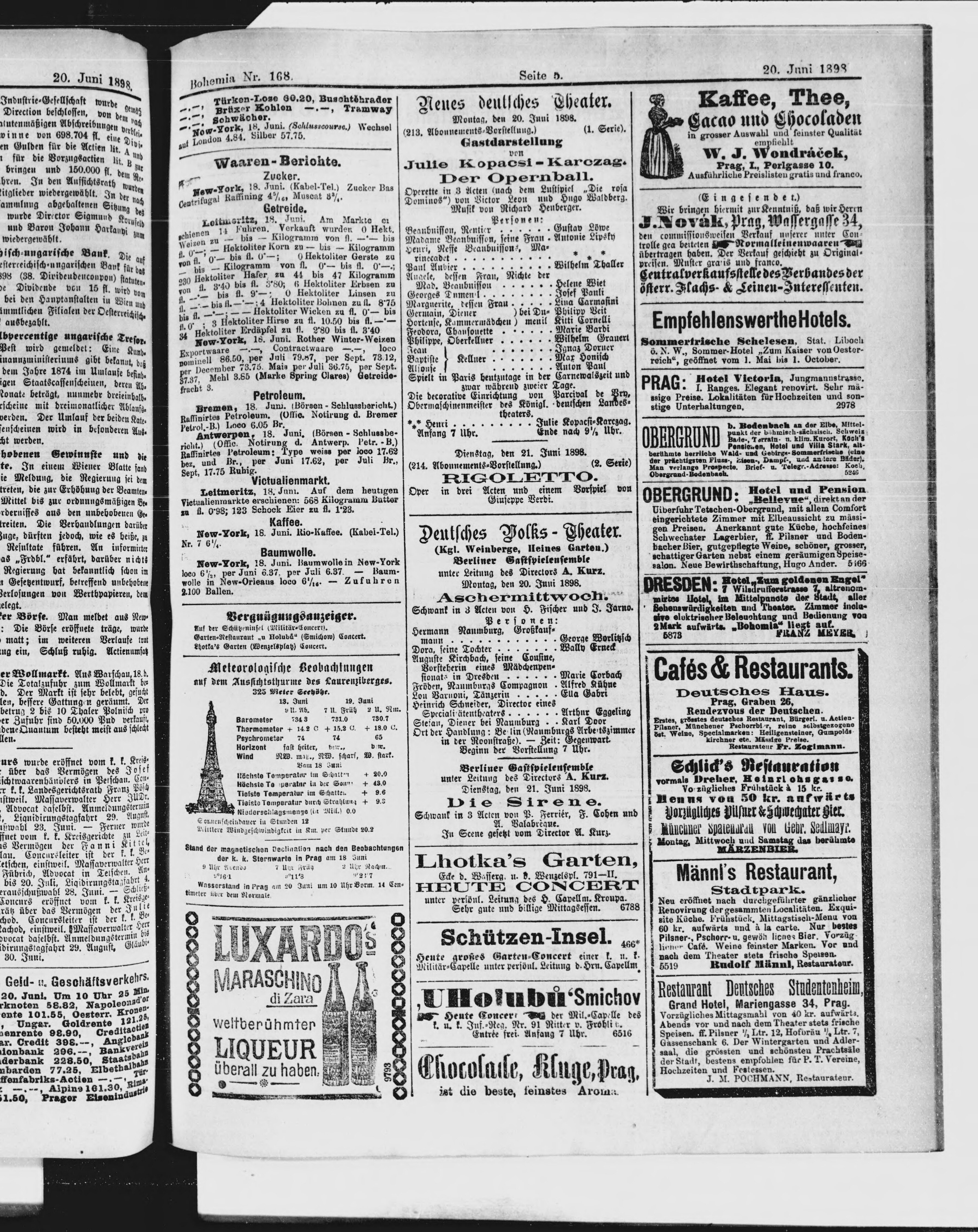 * Datum vydání výtisku: 20.6.1898 Číslo výtisku: 168
