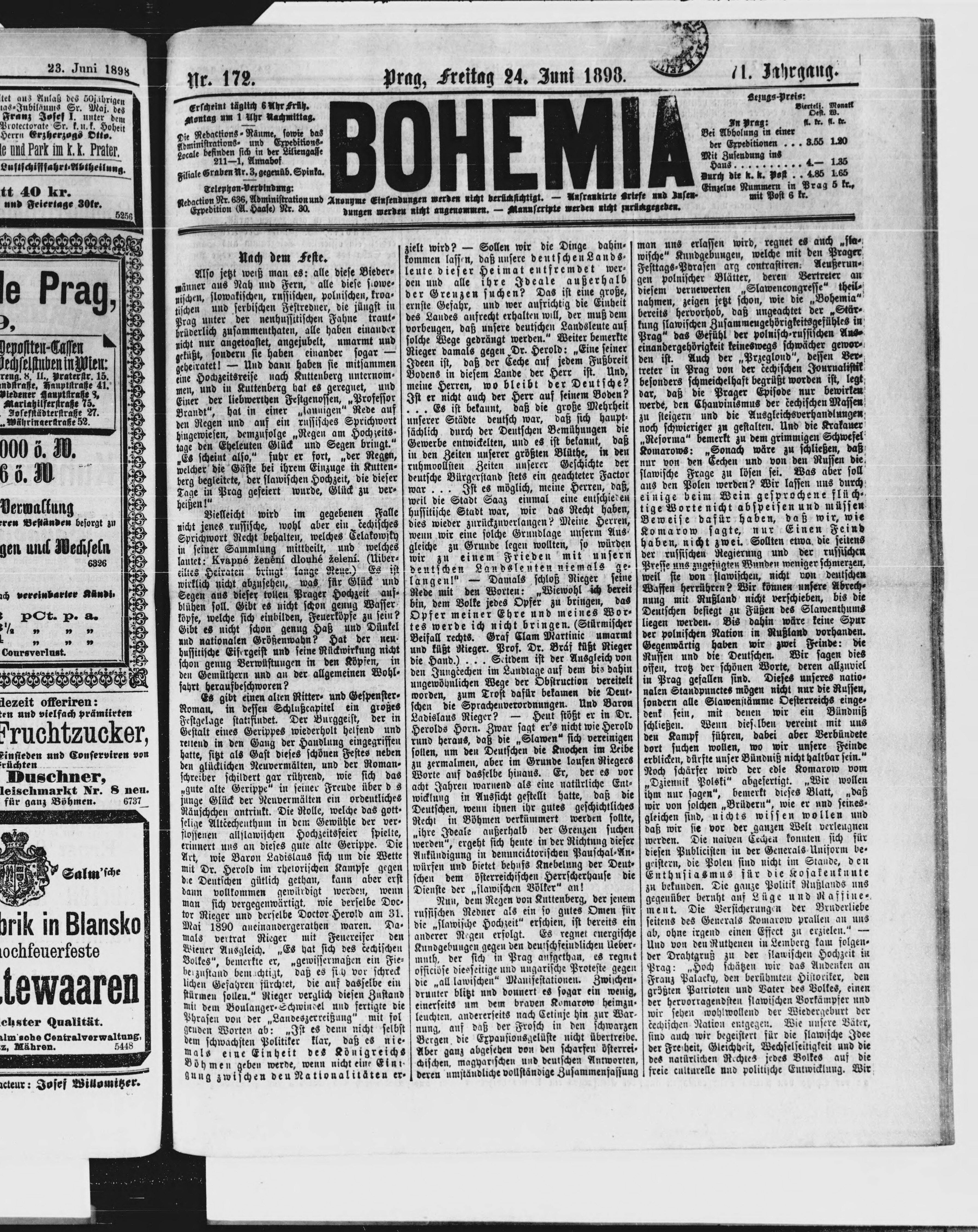 * Datum vydání výtisku: 24.6.1898 Číslo výtisku: 172