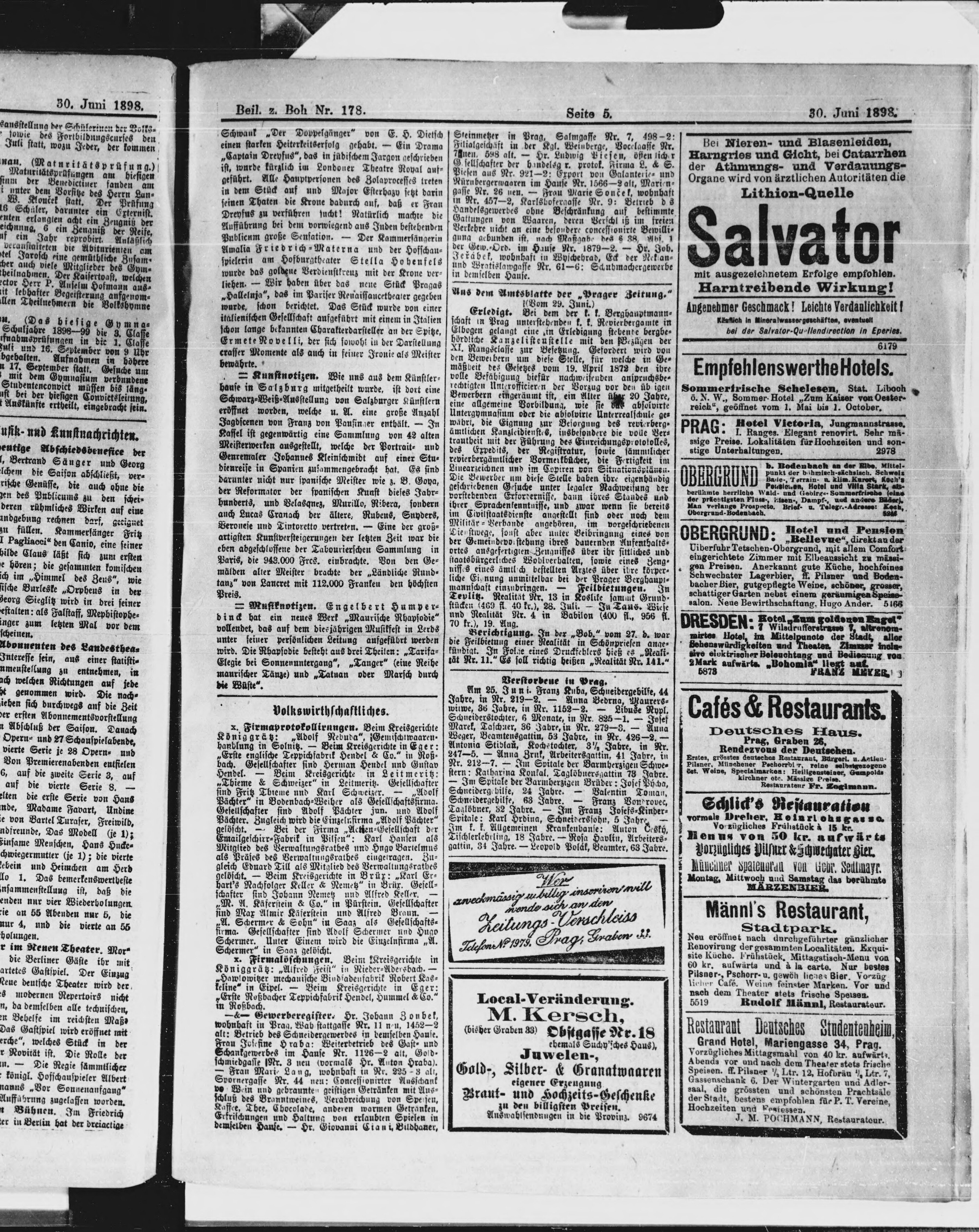 * Datum vydání výtisku: 30.6.1898 Číslo výtisku: 178 Typ výtisku: příloha