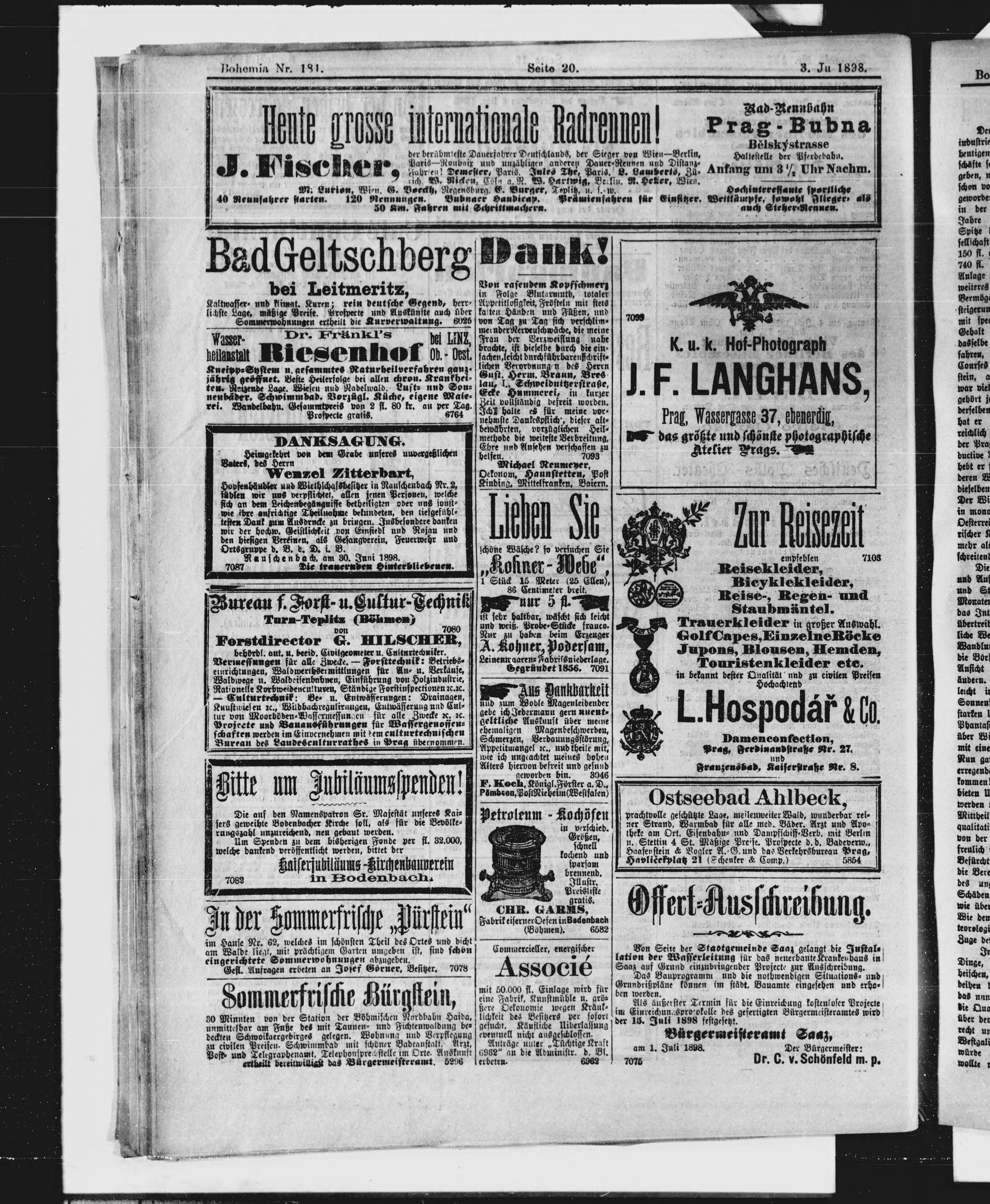 * Datum vydání výtisku: 3.7.1898 Číslo výtisku: 181