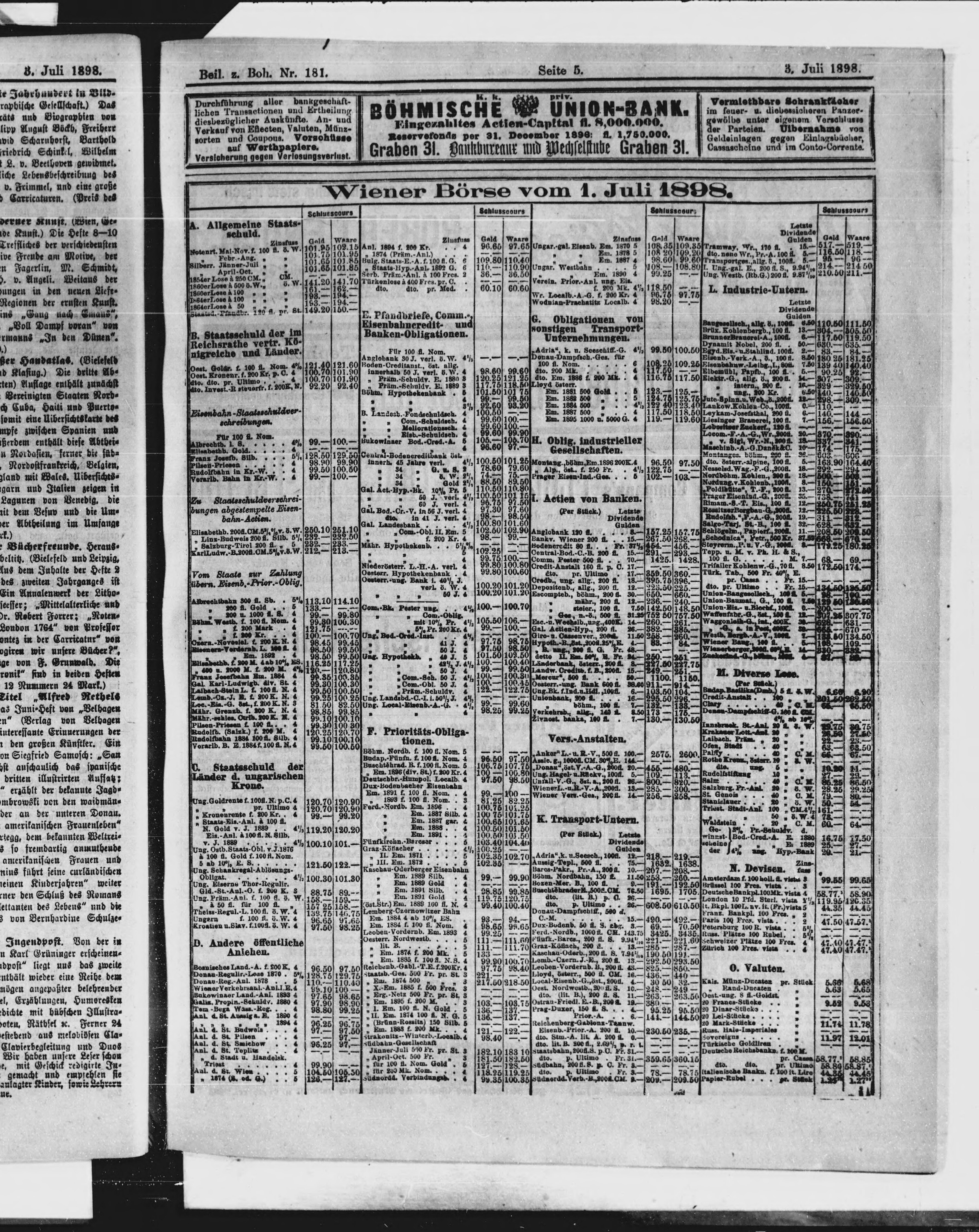 * Datum vydání výtisku: 3.7.1898 Číslo výtisku: 181 Typ výtisku: příloha