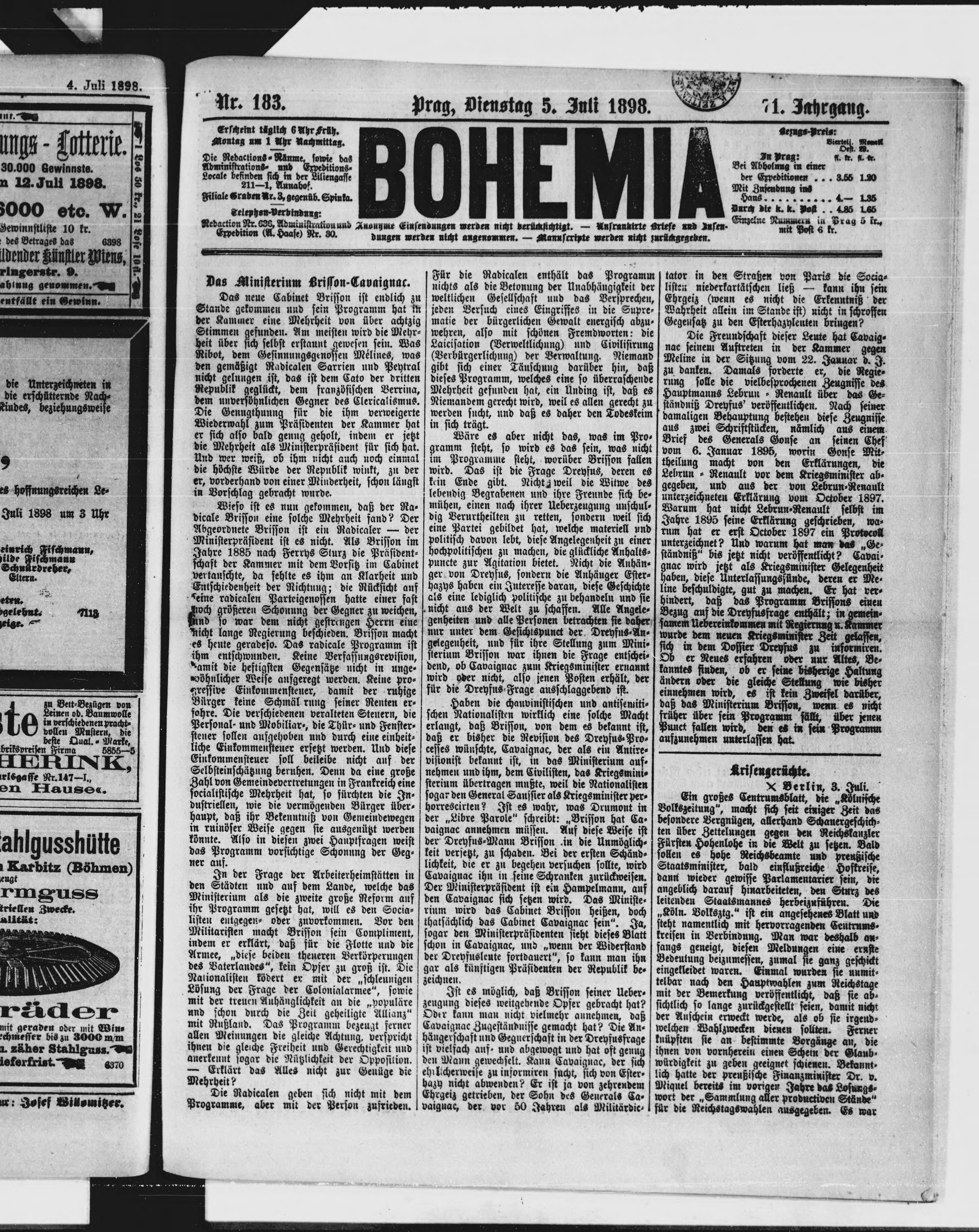 * Datum vydání výtisku: 5.7.1898 Číslo výtisku: 183