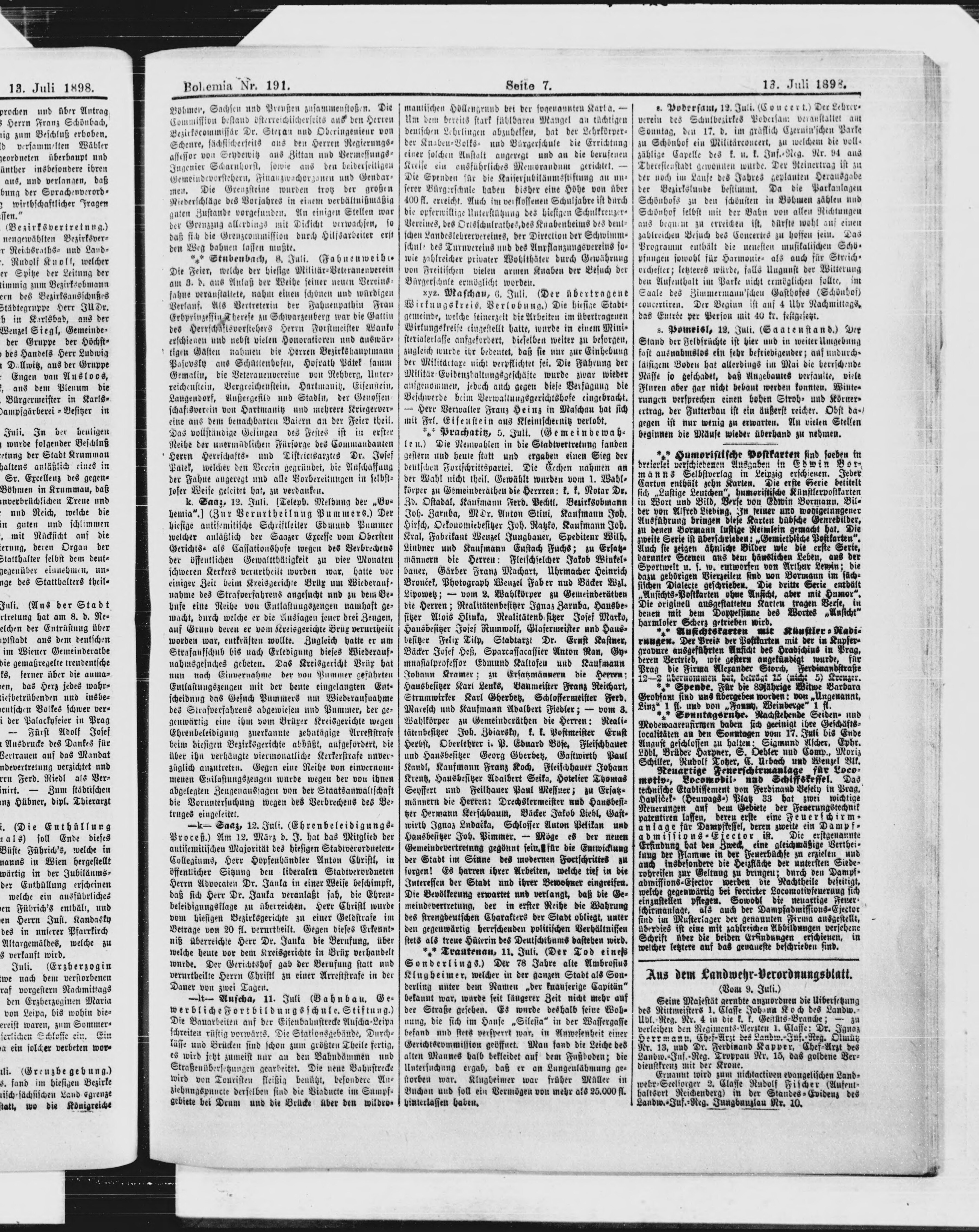 * Datum vydání výtisku: 13.7.1898 Číslo výtisku: 191