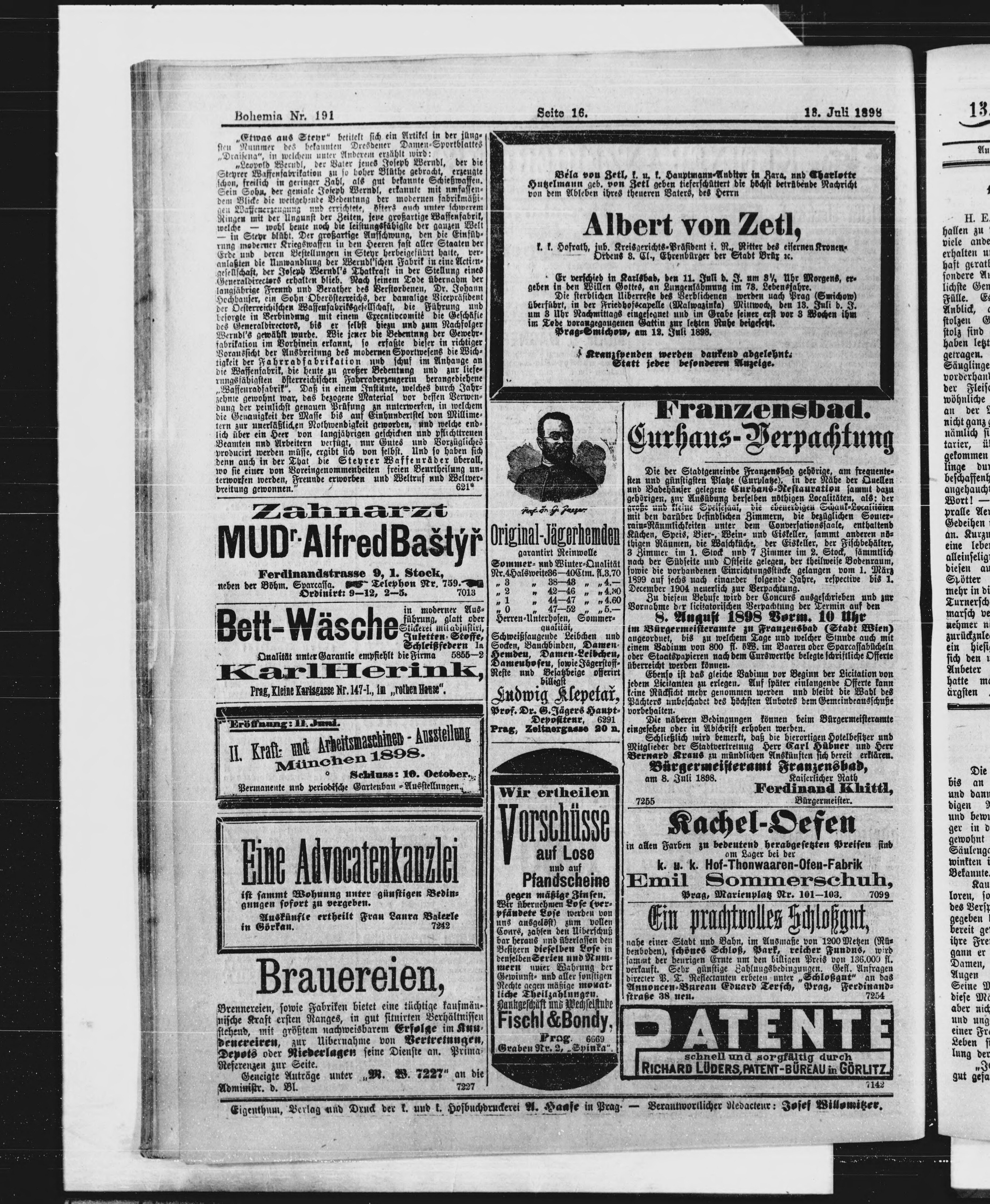 * Datum vydání výtisku: 13.7.1898 Číslo výtisku: 191