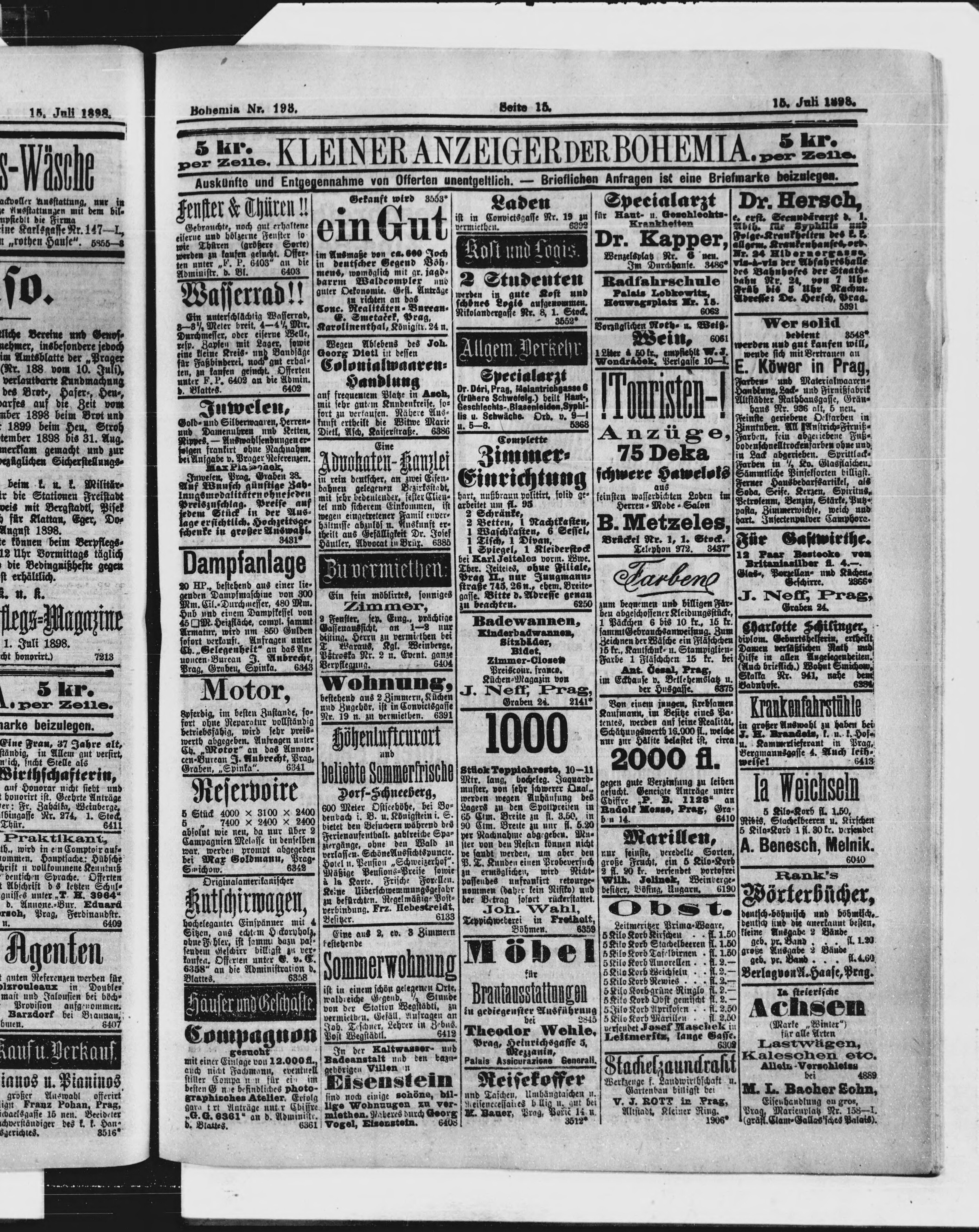 * Datum vydání výtisku: 15.7.1898 Číslo výtisku: 193