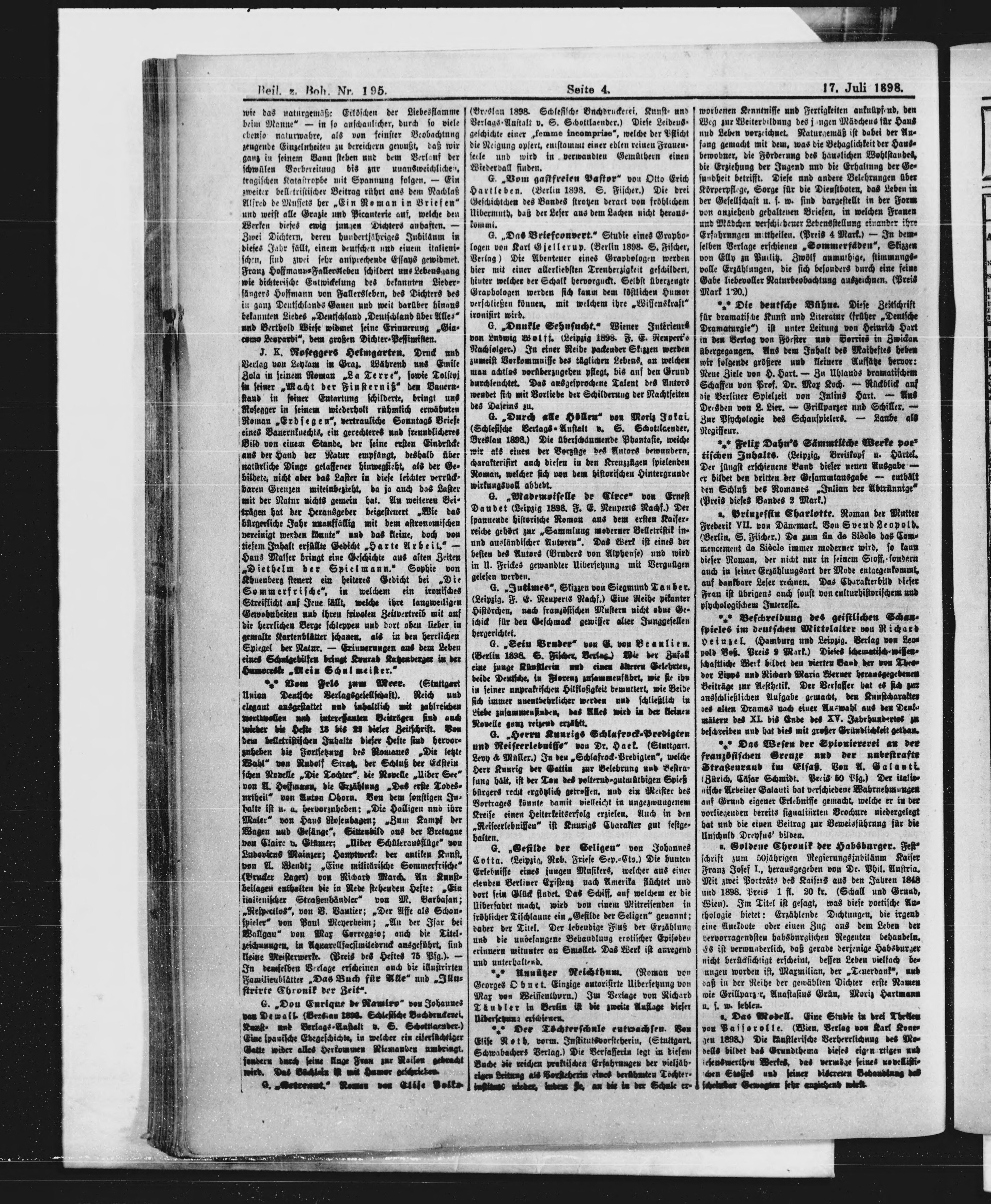 * Datum vydání výtisku: 17.7.1898 Číslo výtisku: 195 Typ výtisku: příloha