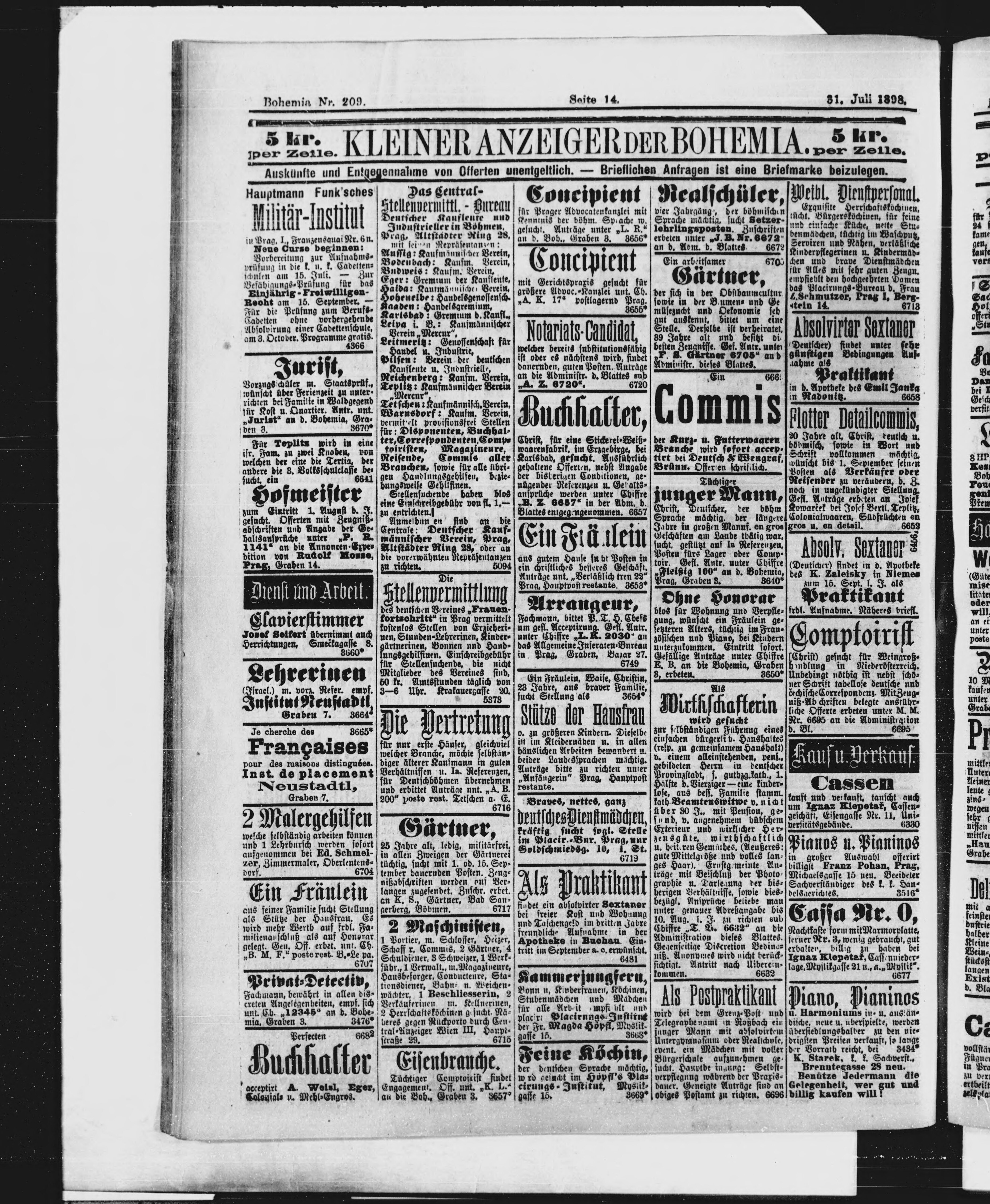 * Datum vydání výtisku: 31.7.1898 Číslo výtisku: 209