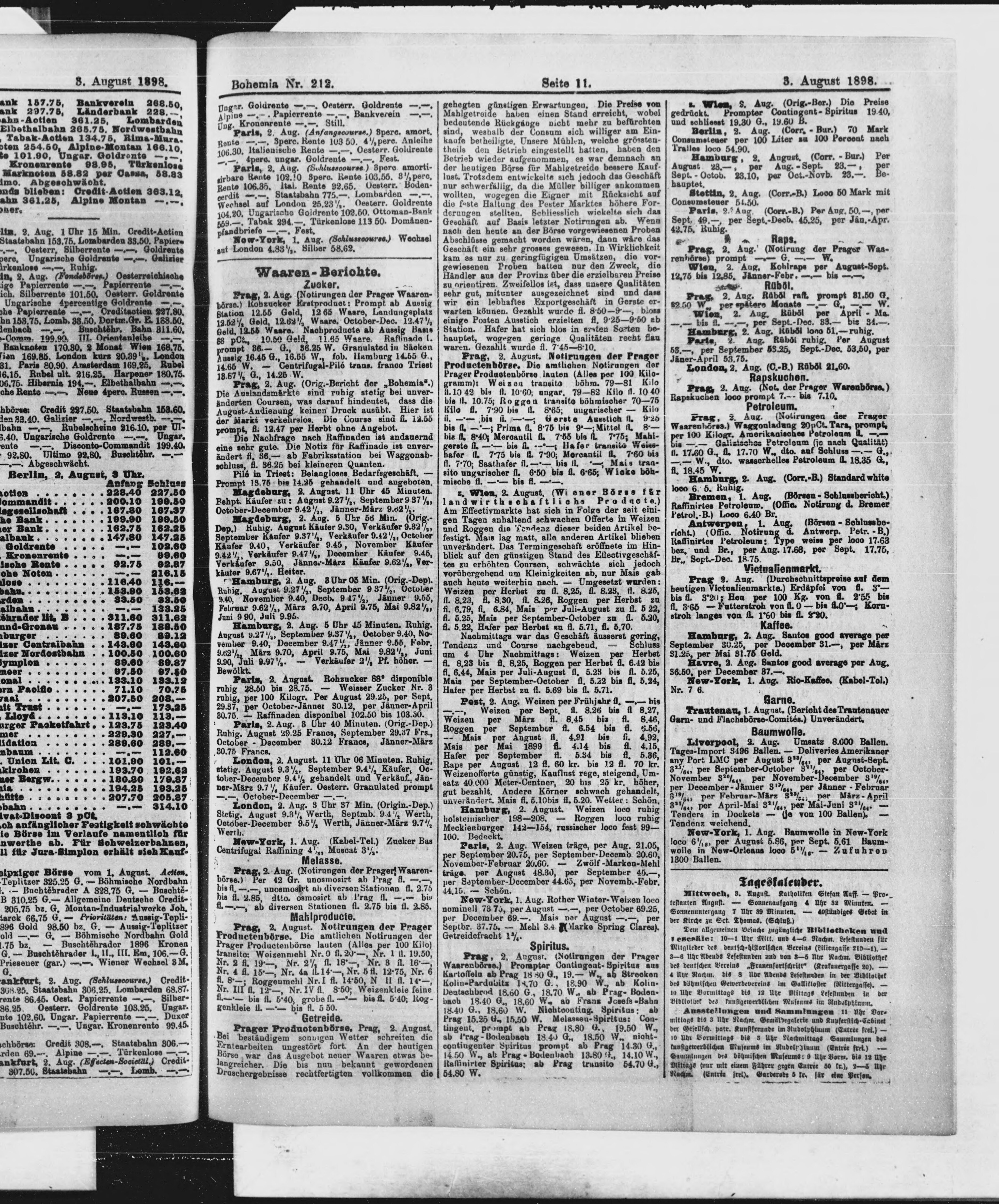 * Datum vydání výtisku: 3.8.1898 Číslo výtisku: 212