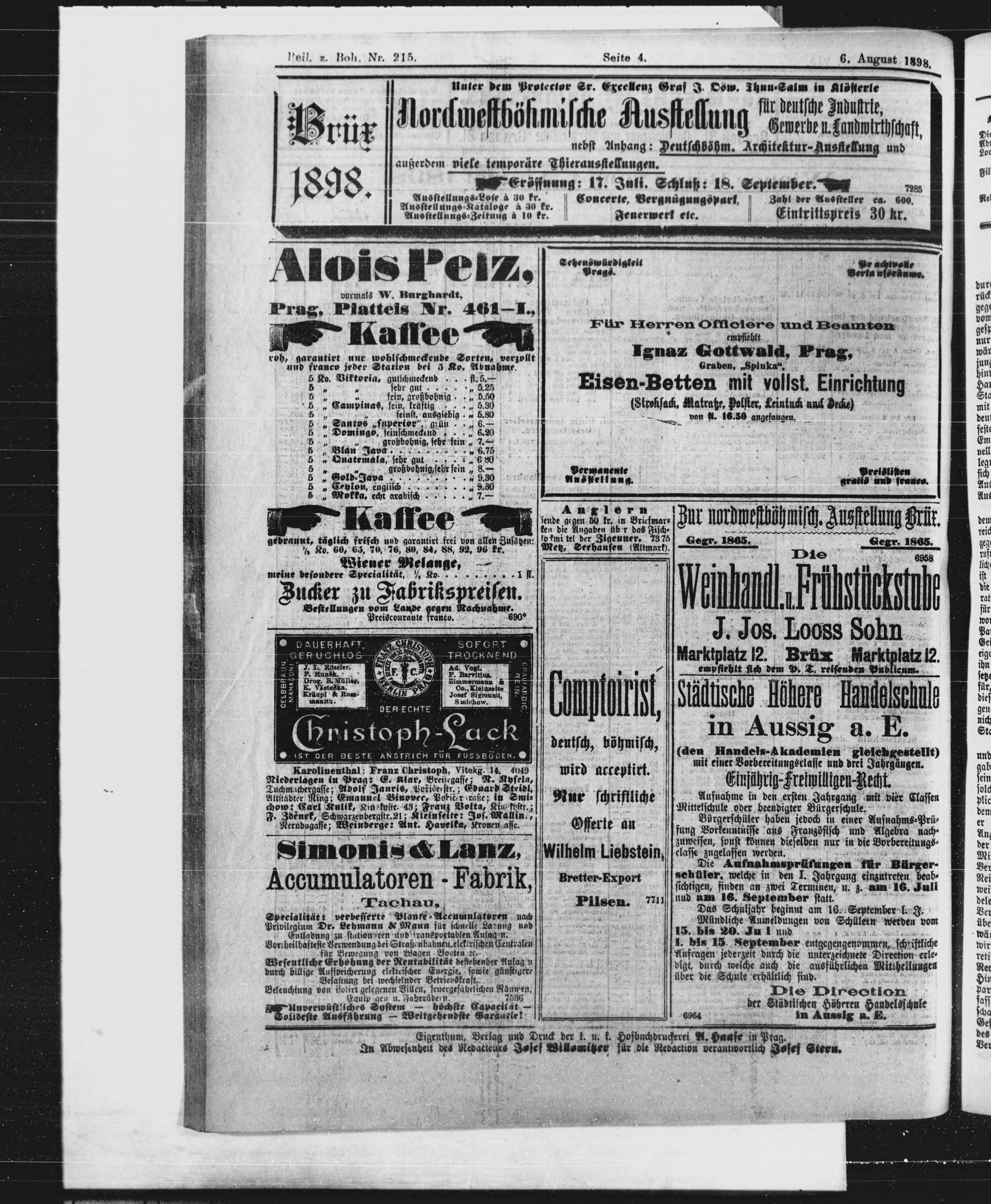 * Datum vydání výtisku: 6.8.1898 Číslo výtisku: 215 Typ výtisku: příloha