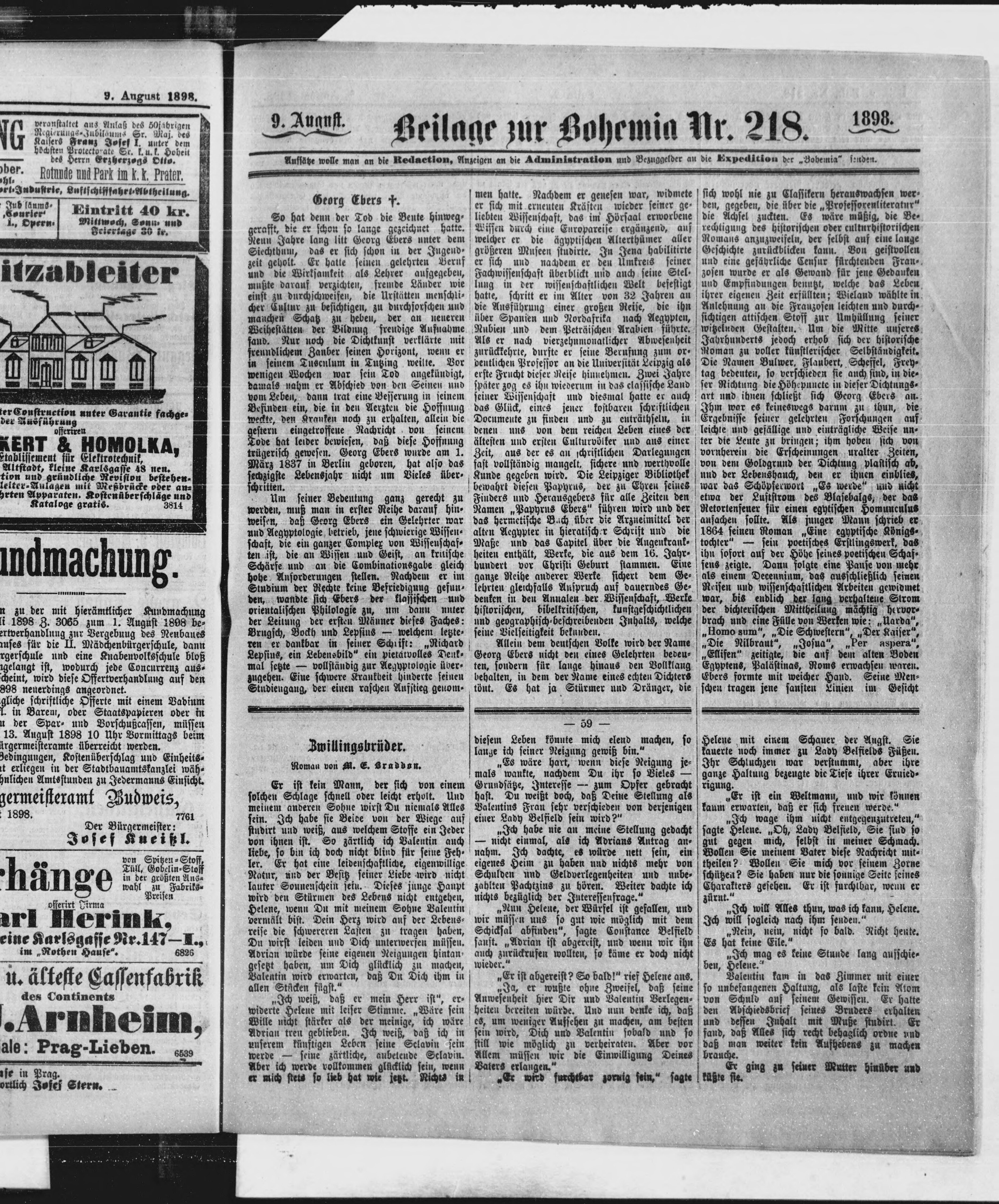* Datum vydání výtisku: 9.8.1898 Číslo výtisku: 218 Typ výtisku: příloha