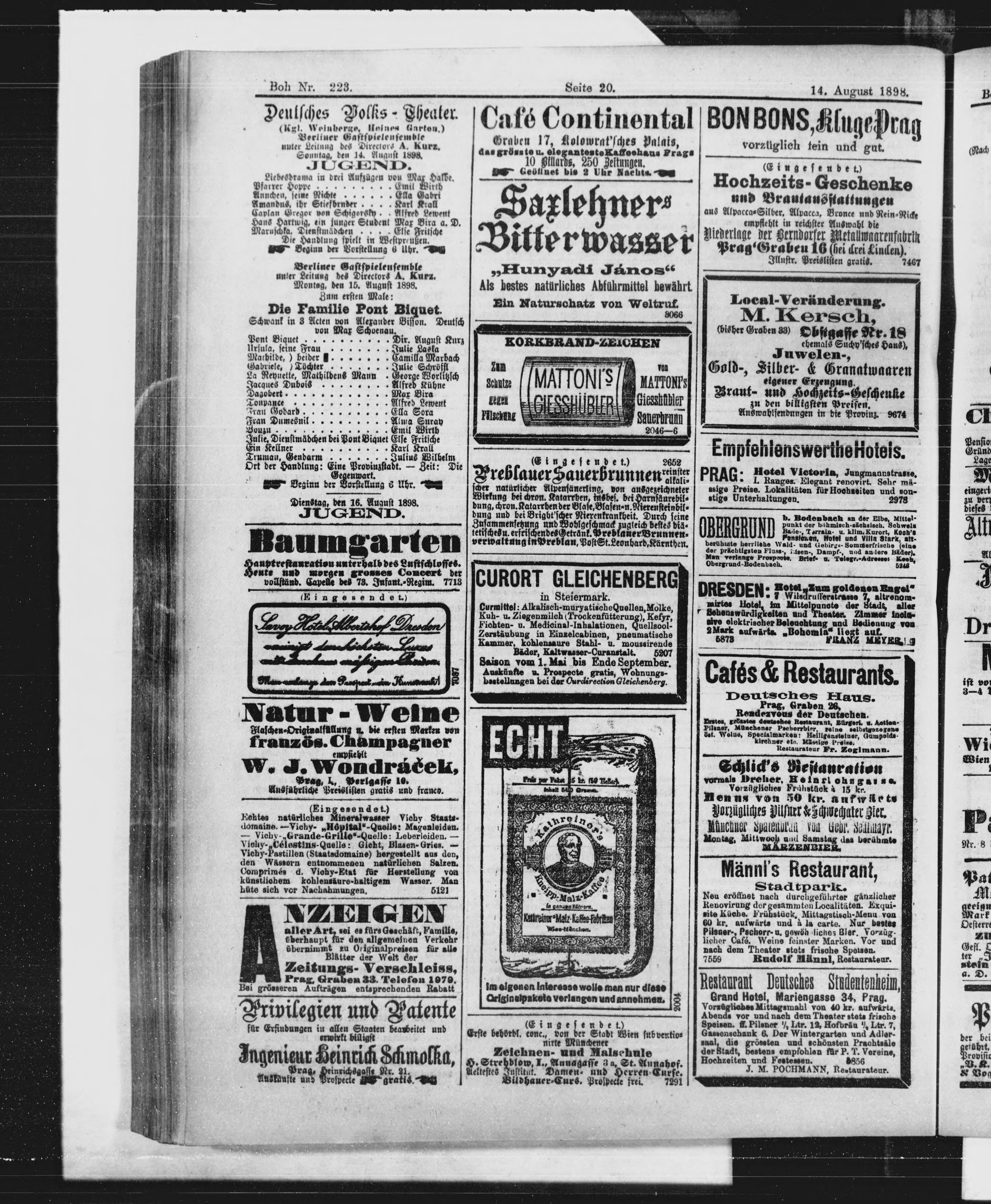 * Datum vydání výtisku: 14.8.1898 Číslo výtisku: 223