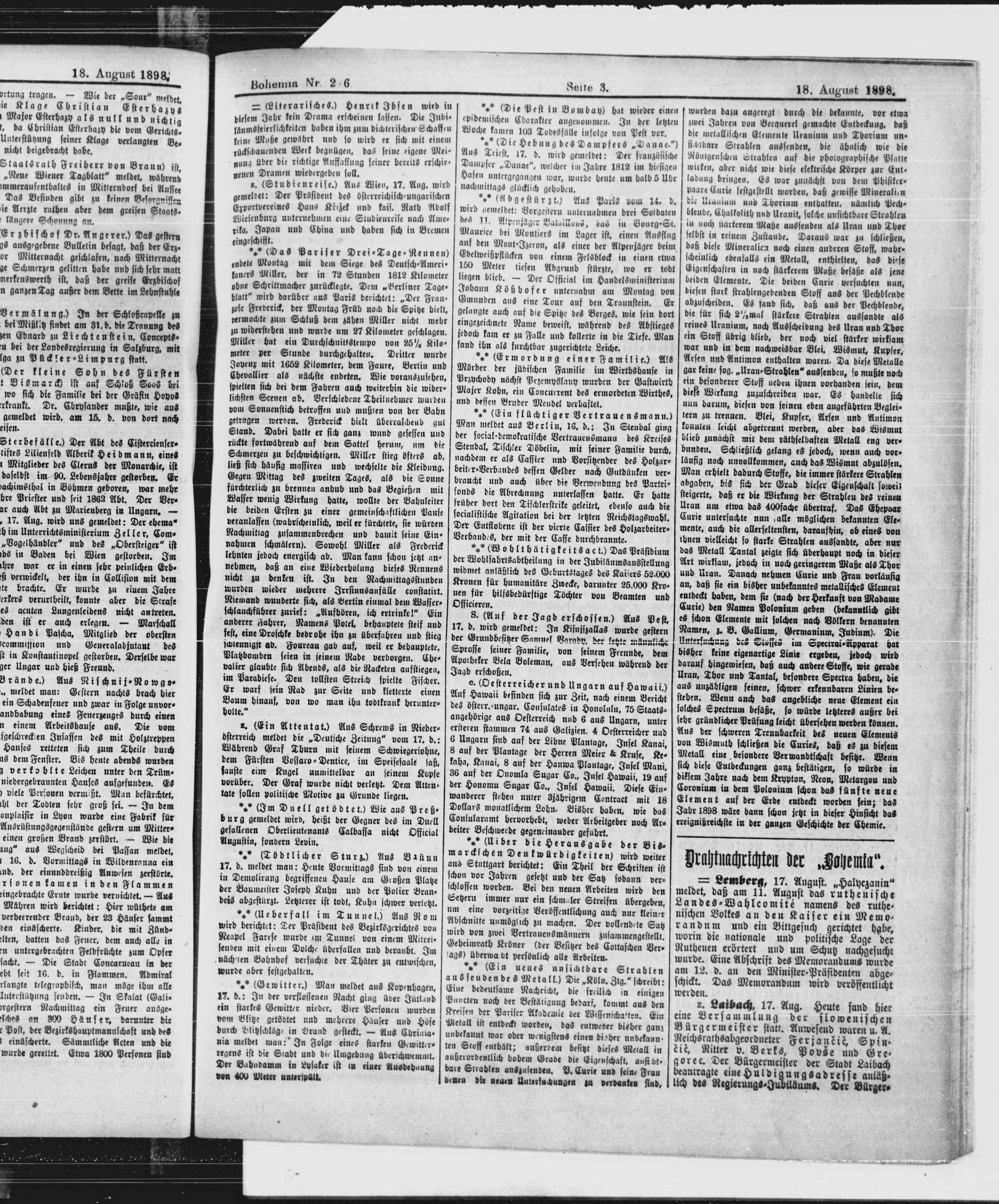 * Datum vydání výtisku: 18.8.1898 Číslo výtisku: 226