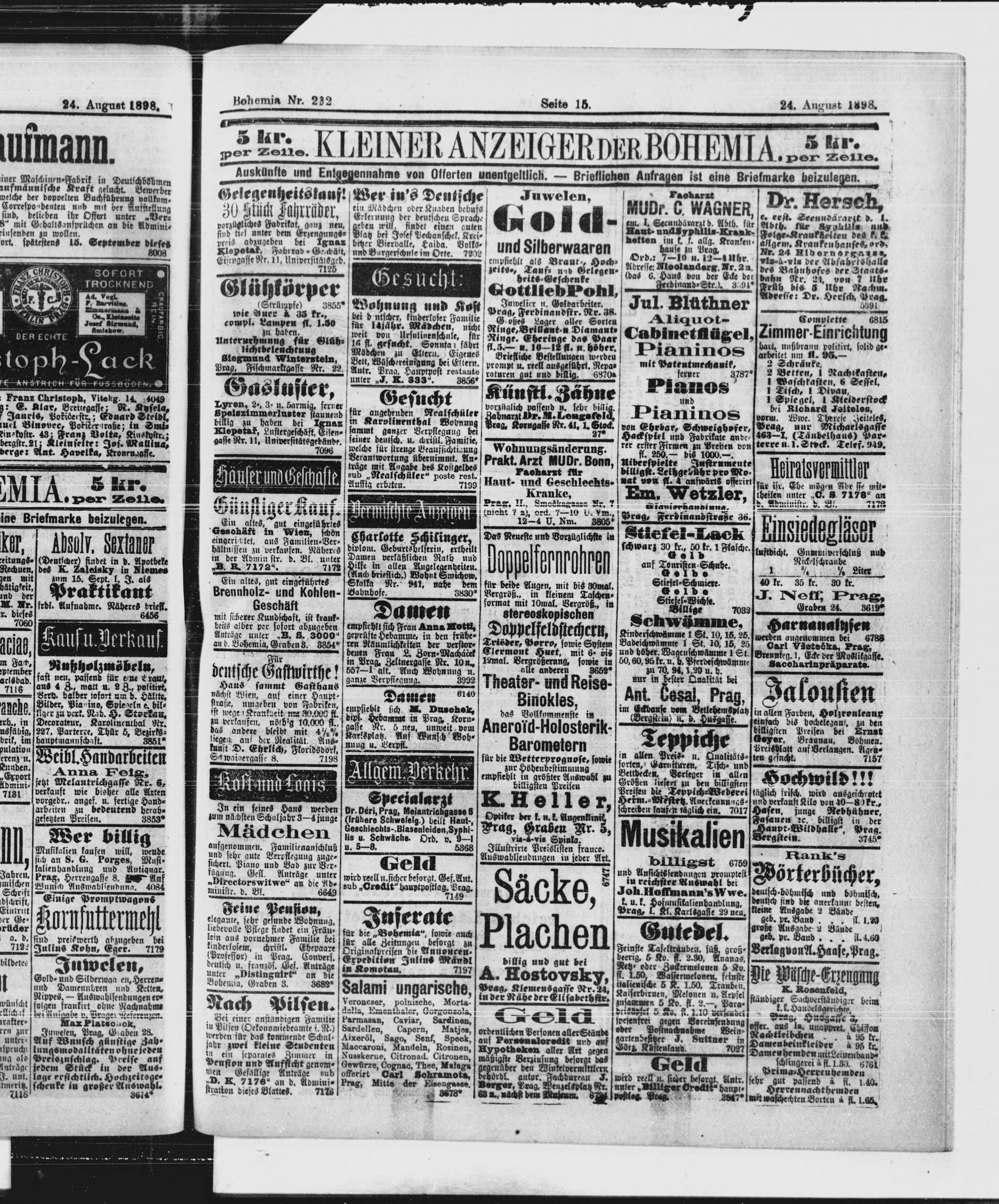 * Datum vydání výtisku: 24.8.1898 Číslo výtisku: 232