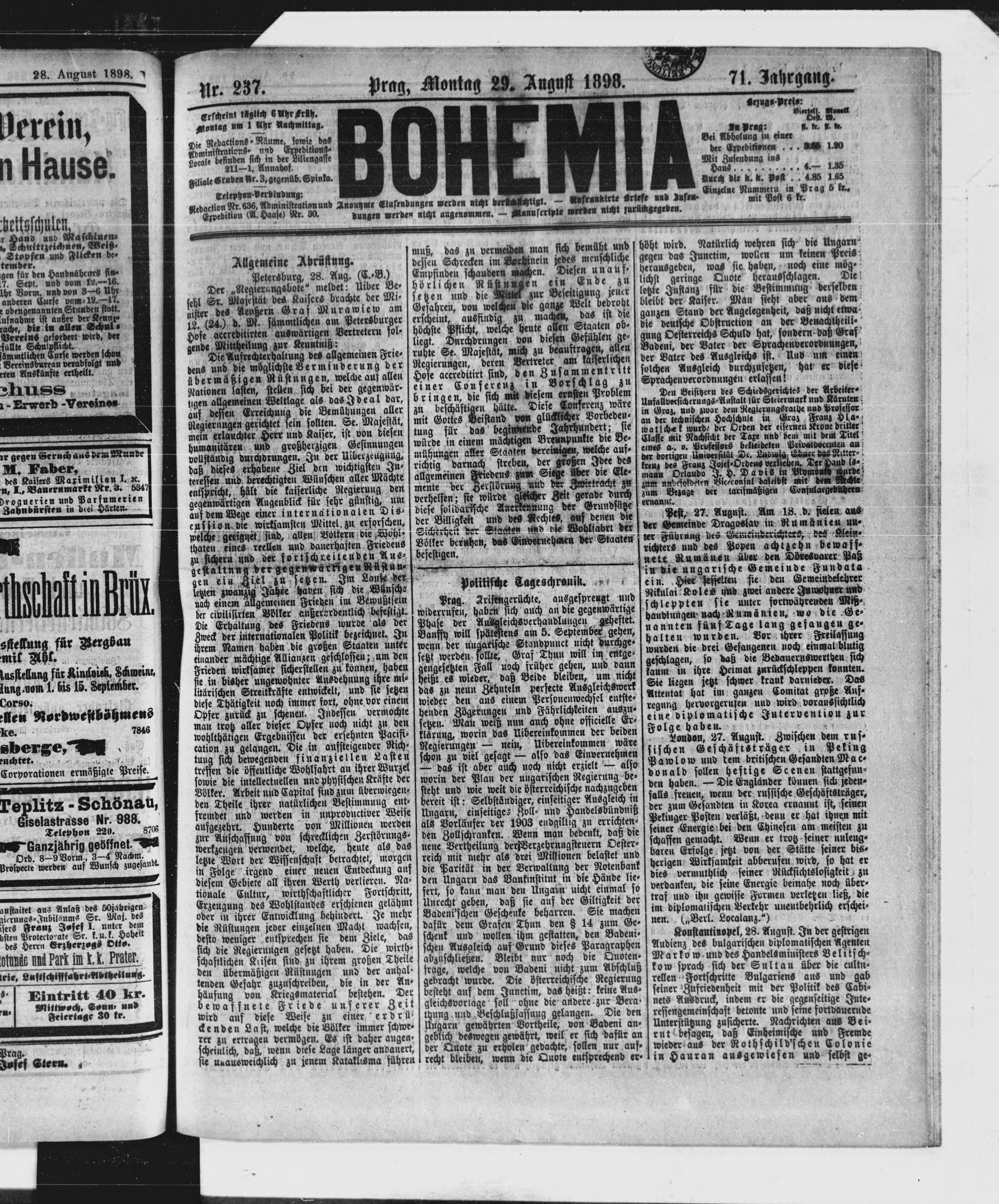 * Datum vydání výtisku: 29.8.1898 Číslo výtisku: 237