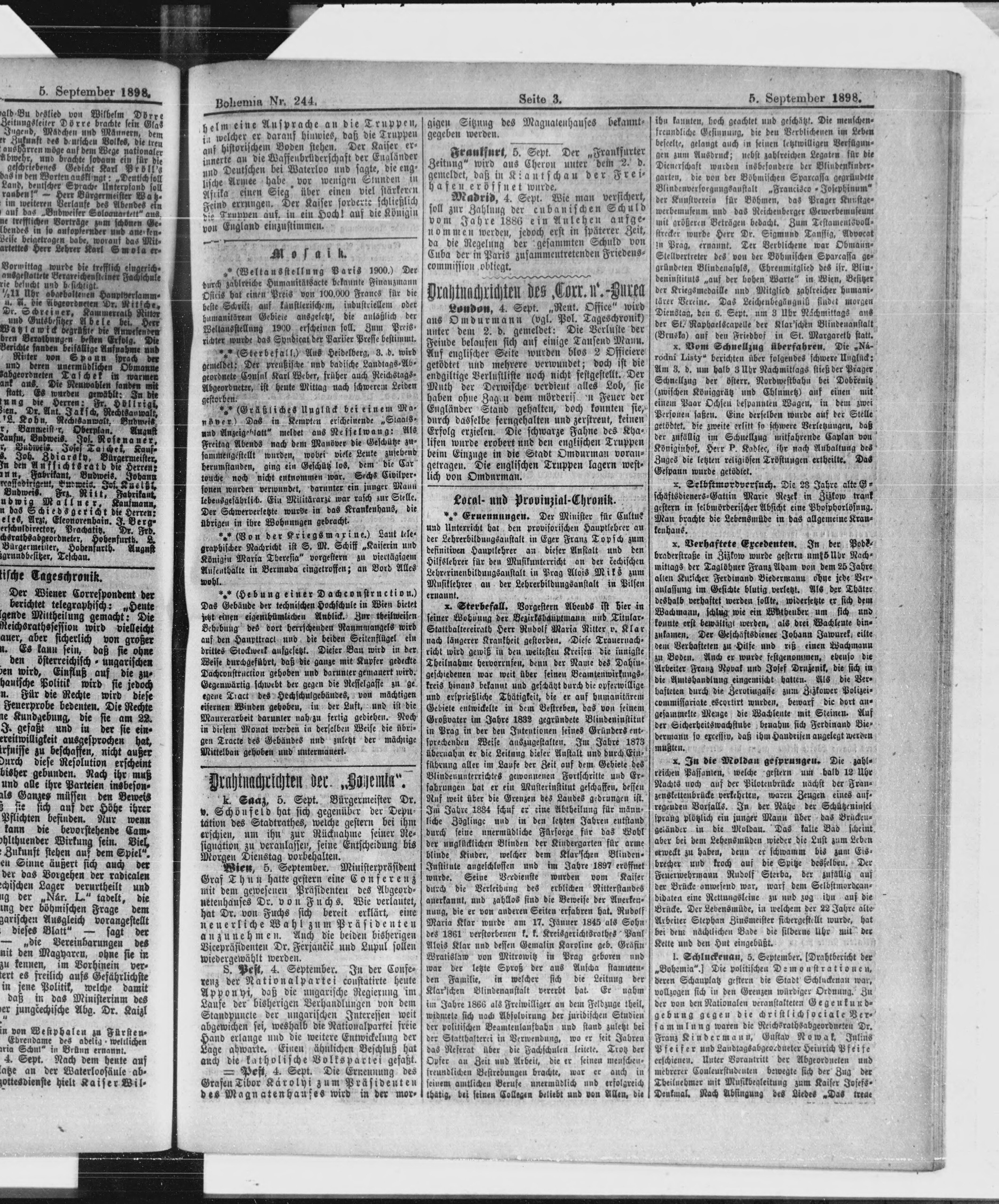 * Datum vydání výtisku: 5.9.1898 Číslo výtisku: 244