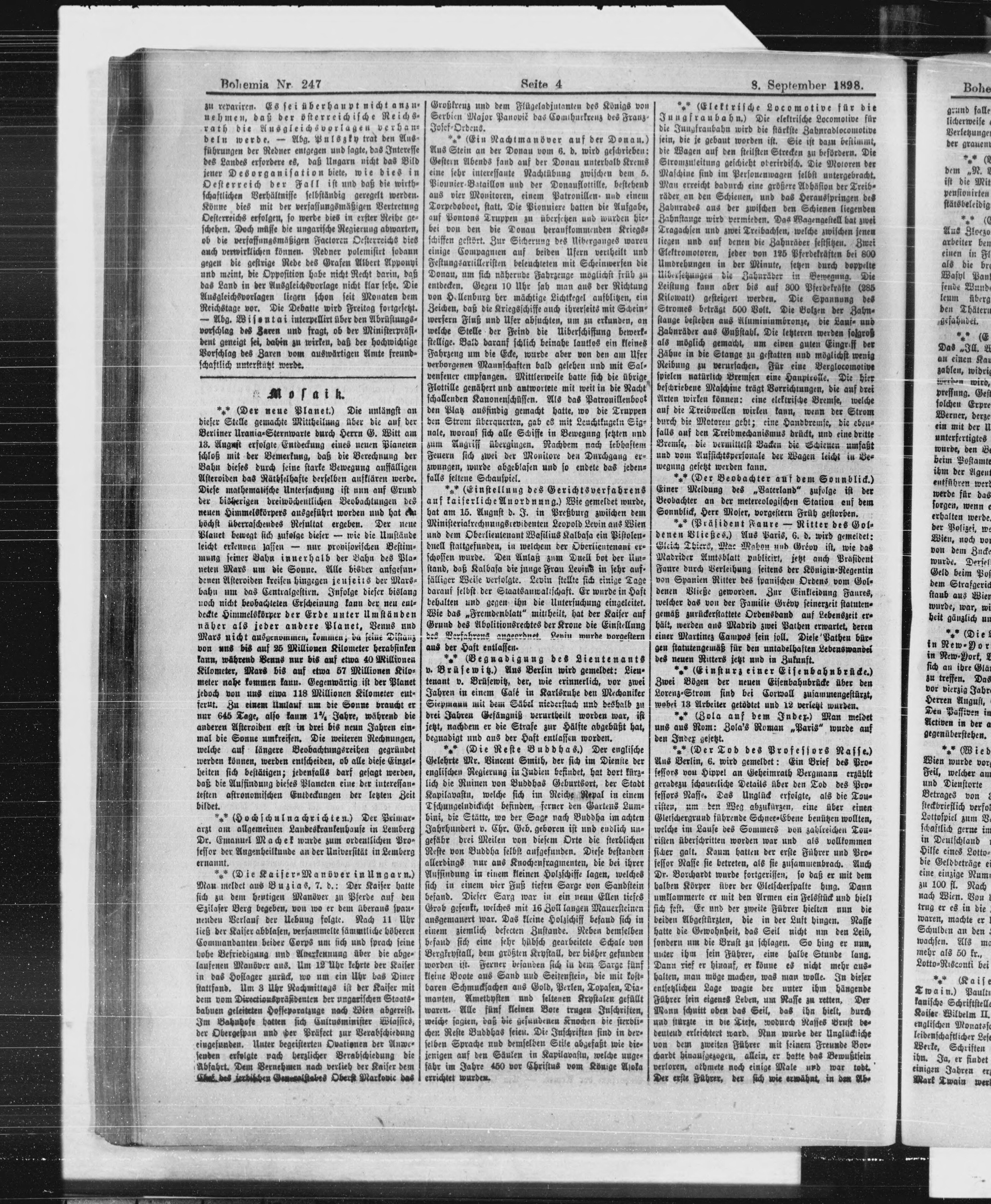 * Datum vydání výtisku: 8.9.1898 Číslo výtisku: 247