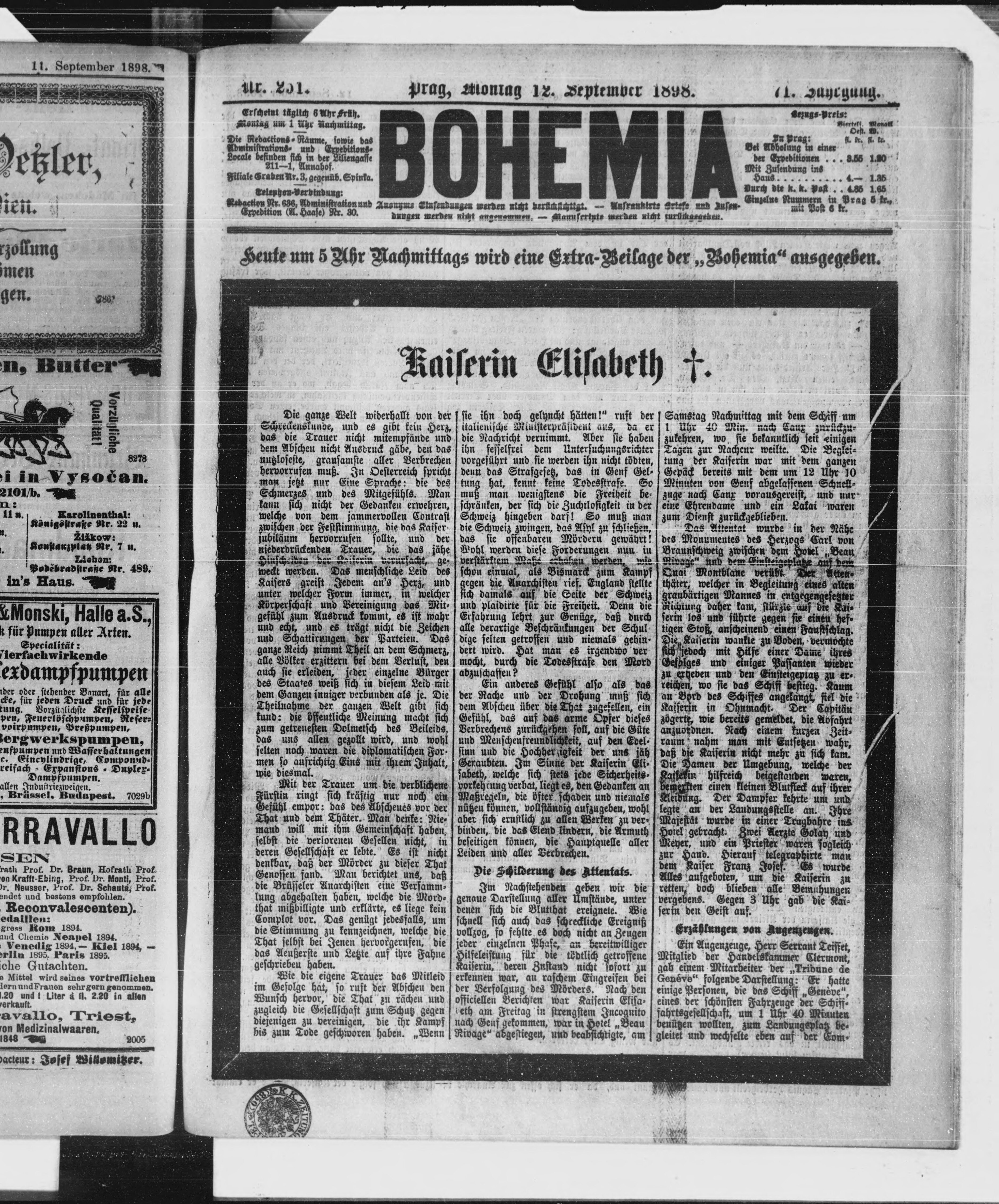 * Datum vydání výtisku: 12.9.1898 Číslo výtisku: 251
