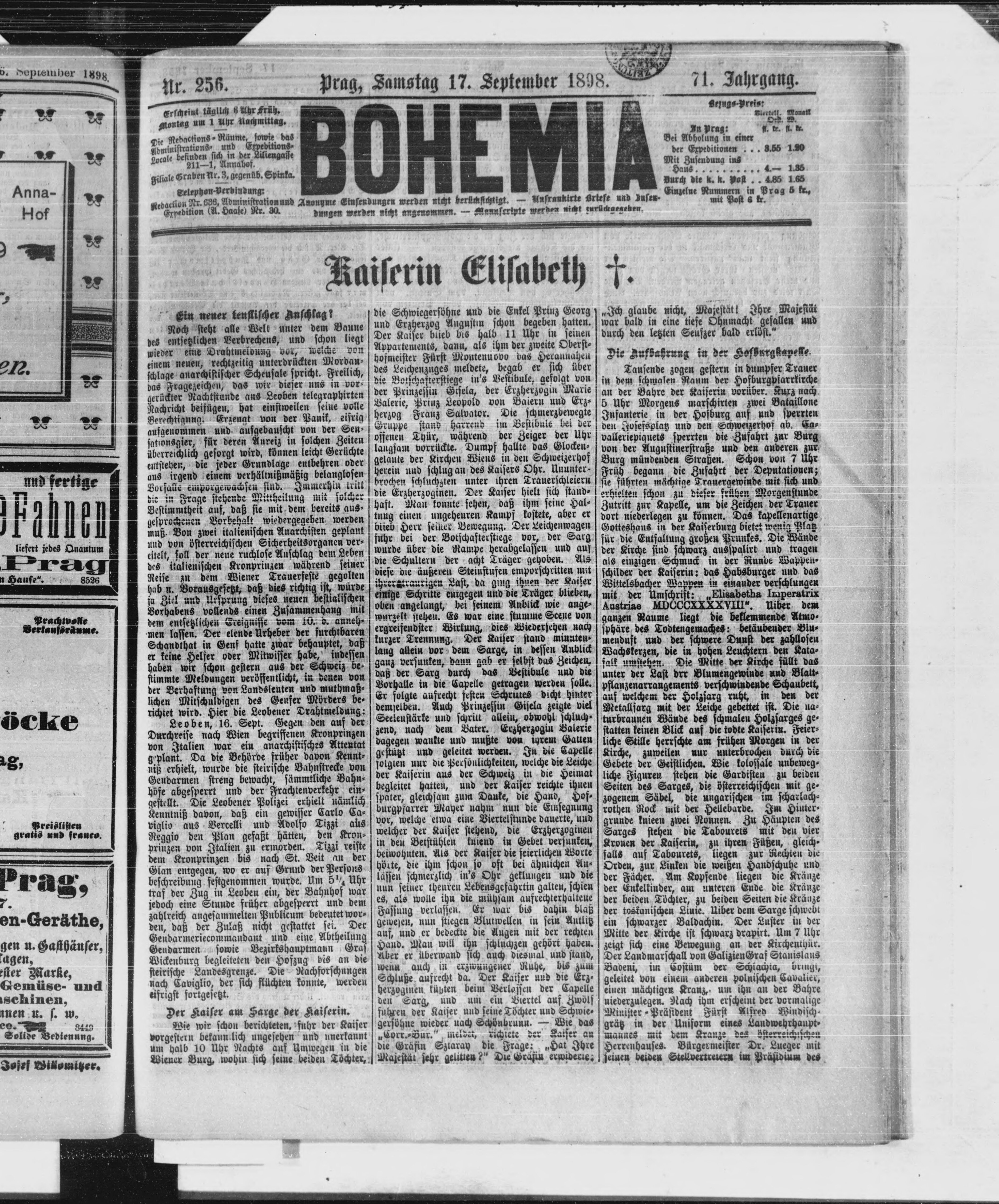 * Datum vydání výtisku: 17.9.1898 Číslo výtisku: 256