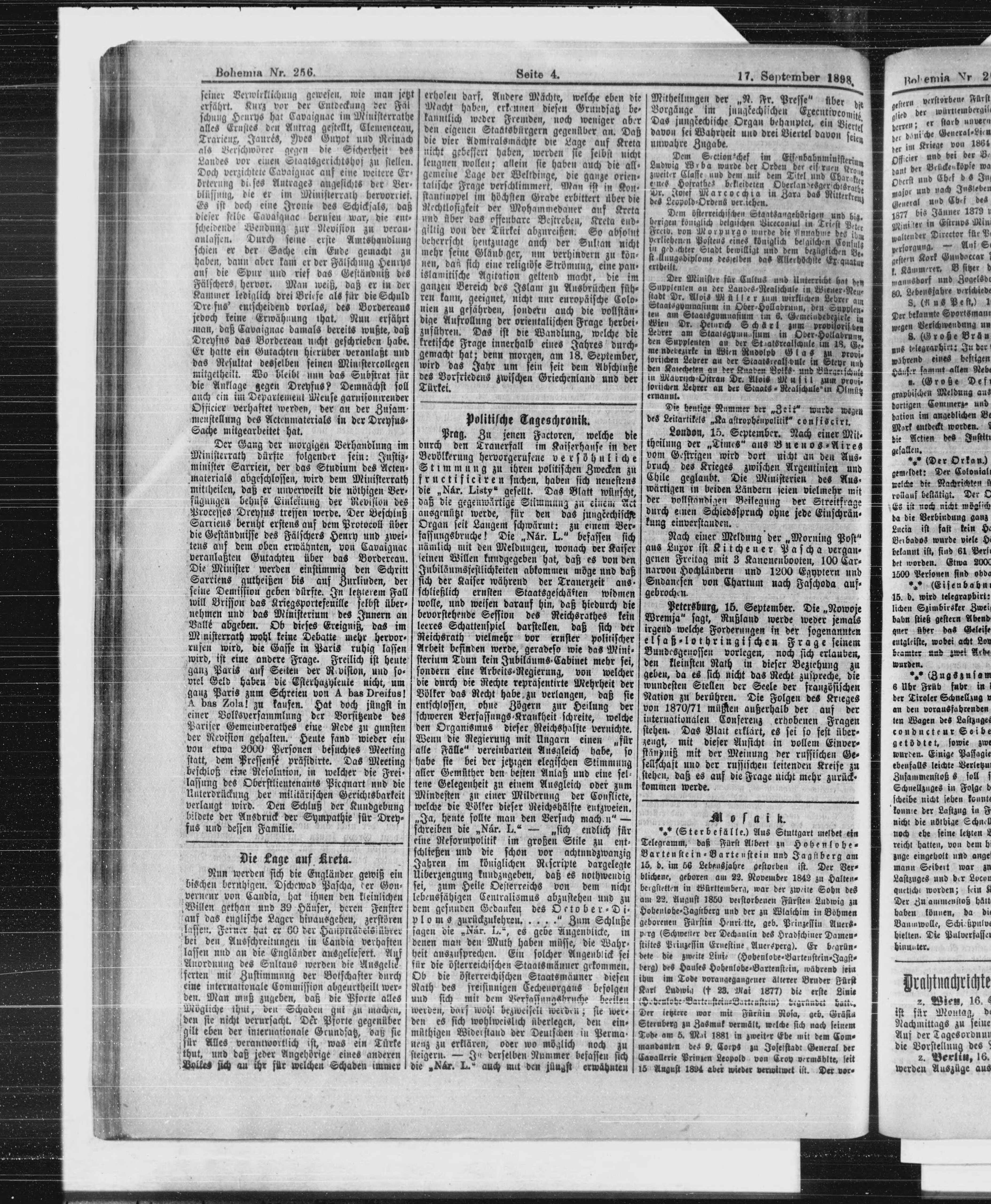 * Datum vydání výtisku: 17.9.1898 Číslo výtisku: 256