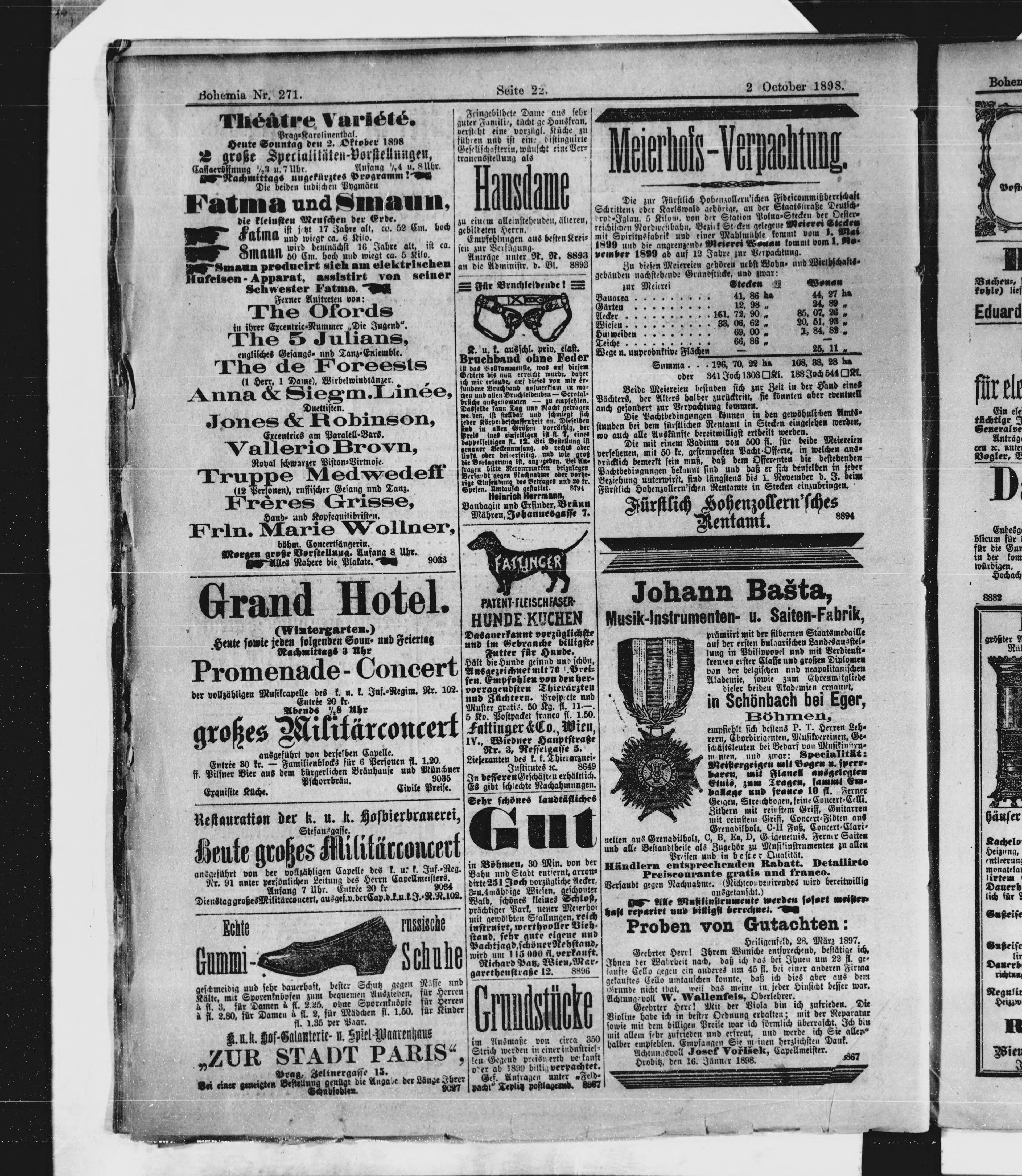 * Datum vydání výtisku: 2.10.1898 Číslo výtisku: 271