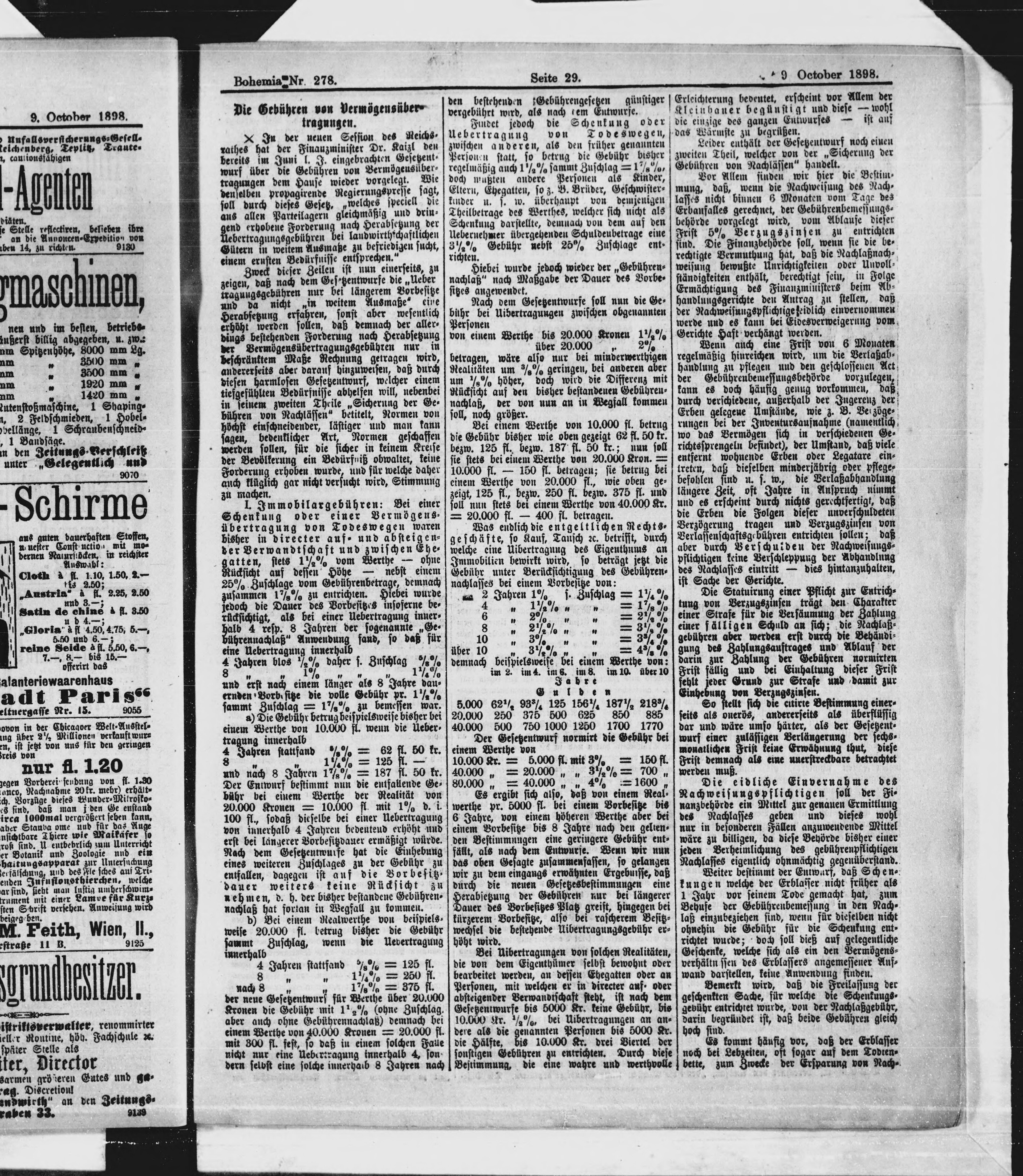 * Datum vydání výtisku: 9.10.1898 Číslo výtisku: 278
