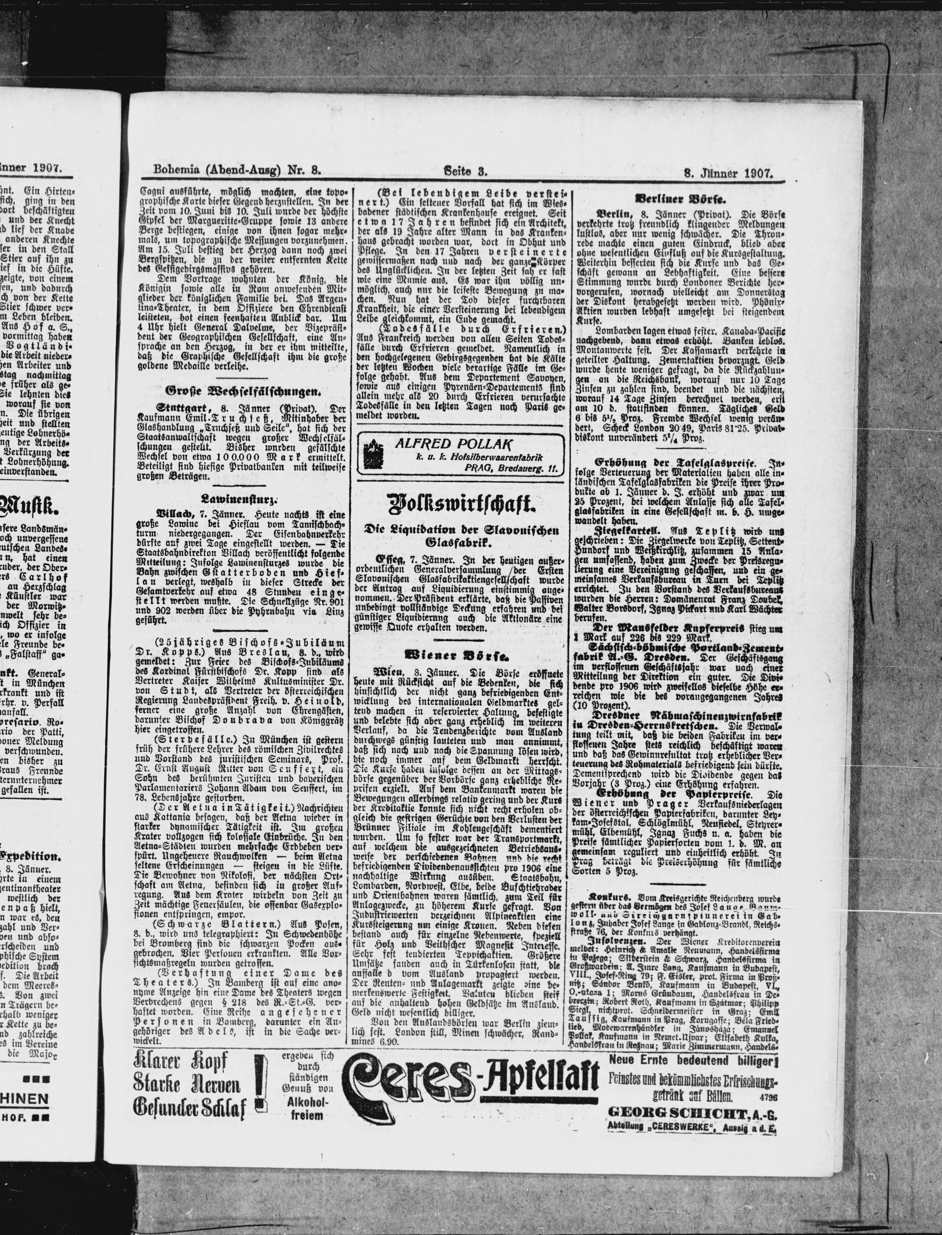 * Datum vydání výtisku: 8.1.1907 Číslo výtisku: 8 Poznámky k výtisku: večerní vydání