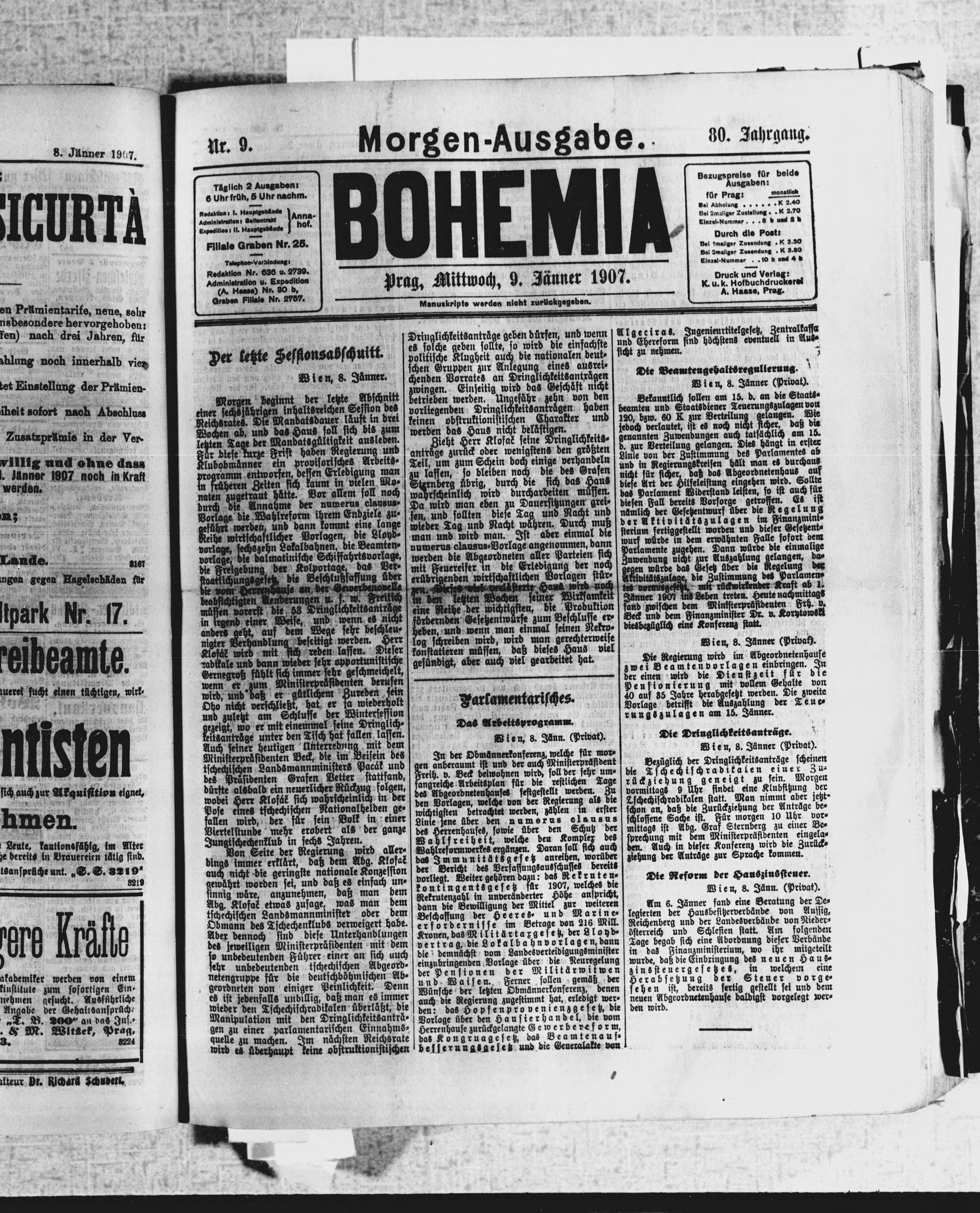 * Datum vydání výtisku: 9.1.1907 Číslo výtisku: 9 Poznámky k výtisku: ranní vydání