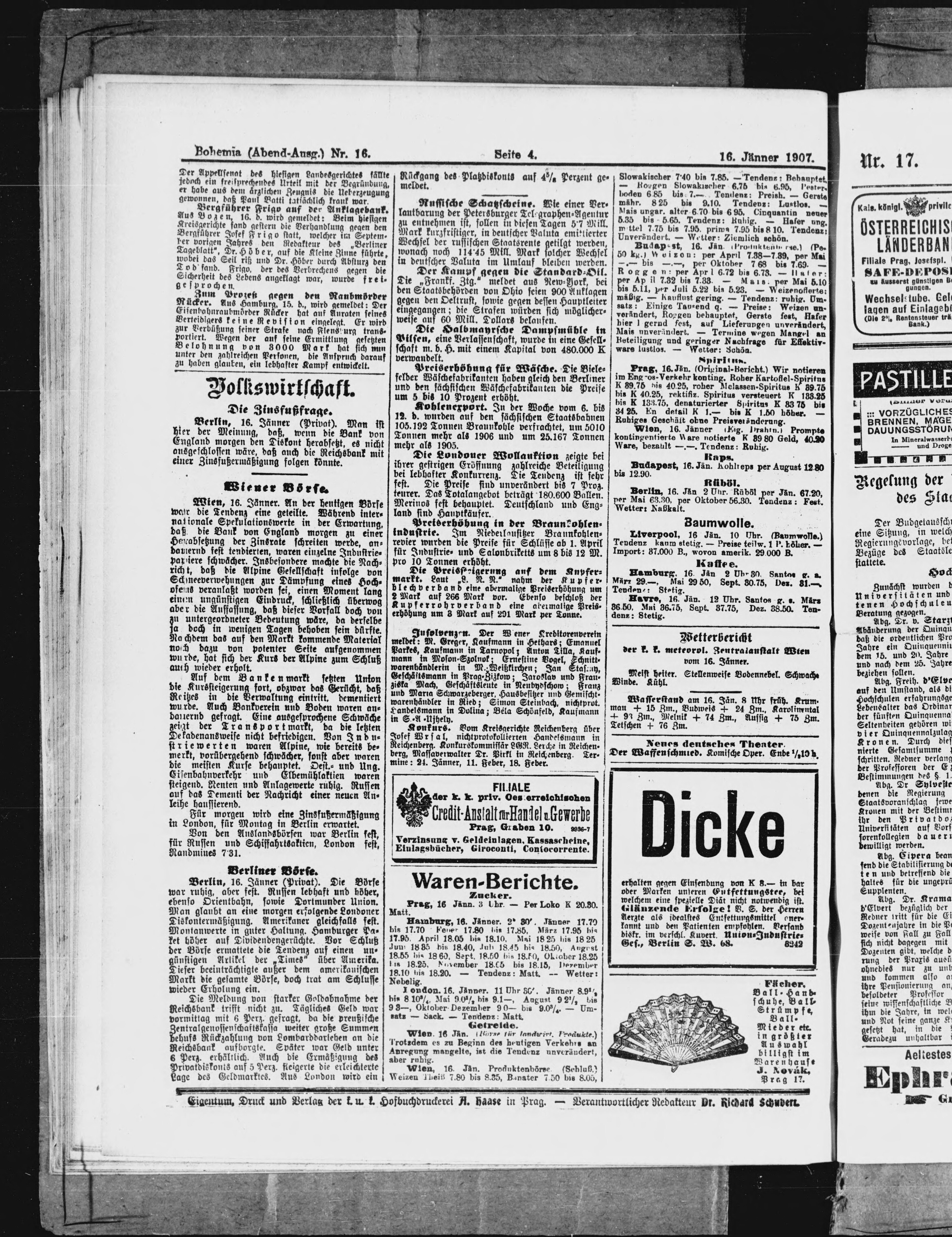 * Datum vydání výtisku: 16.1.1907 Číslo výtisku: 16 Poznámky k výtisku: večerní vydání