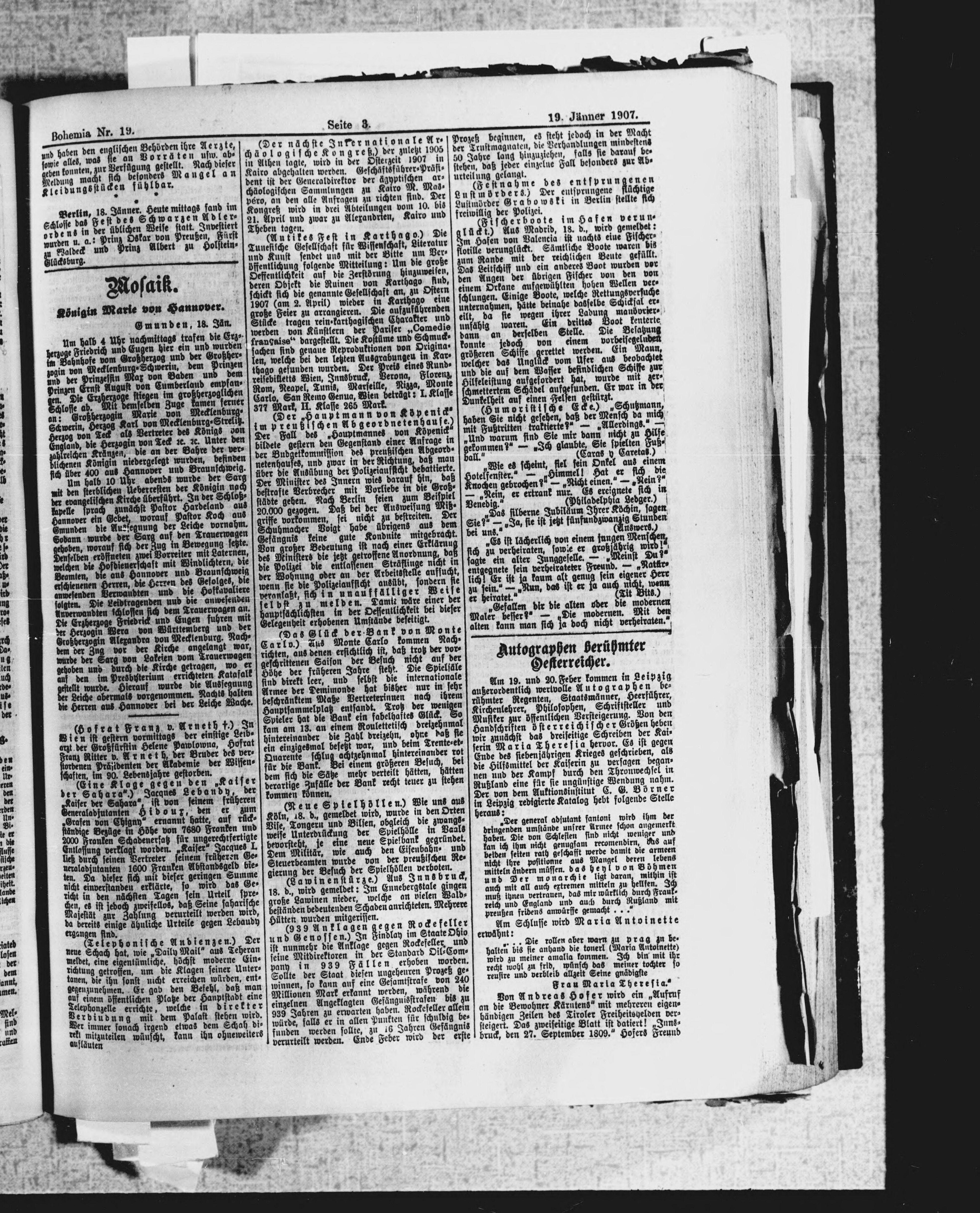 * Datum vydání výtisku: 19.1.1907 Číslo výtisku: 19 Poznámky k výtisku: ranní vydání