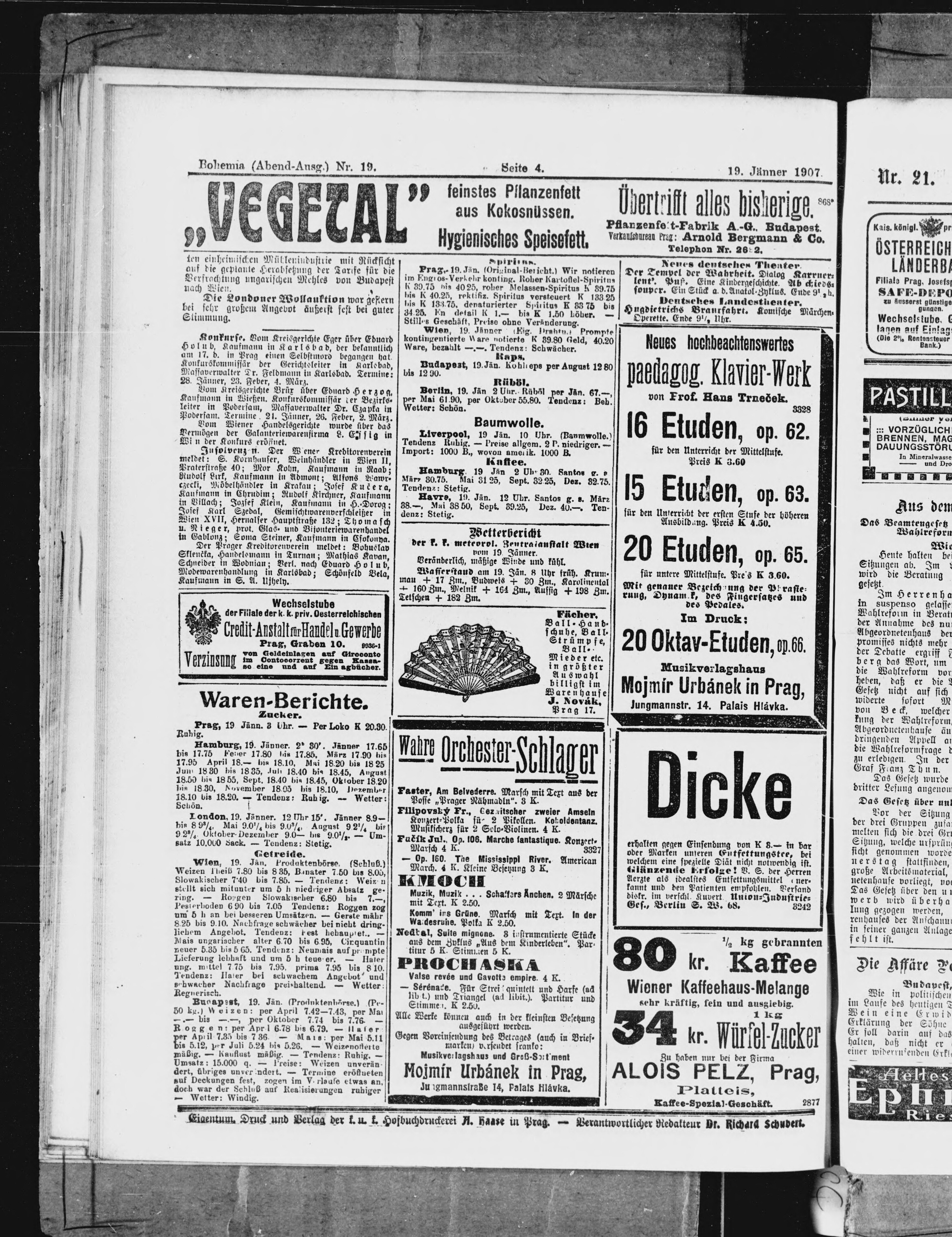 * Datum vydání výtisku: 19.1.1907 Číslo výtisku: 19 Poznámky k výtisku: večerní vydání