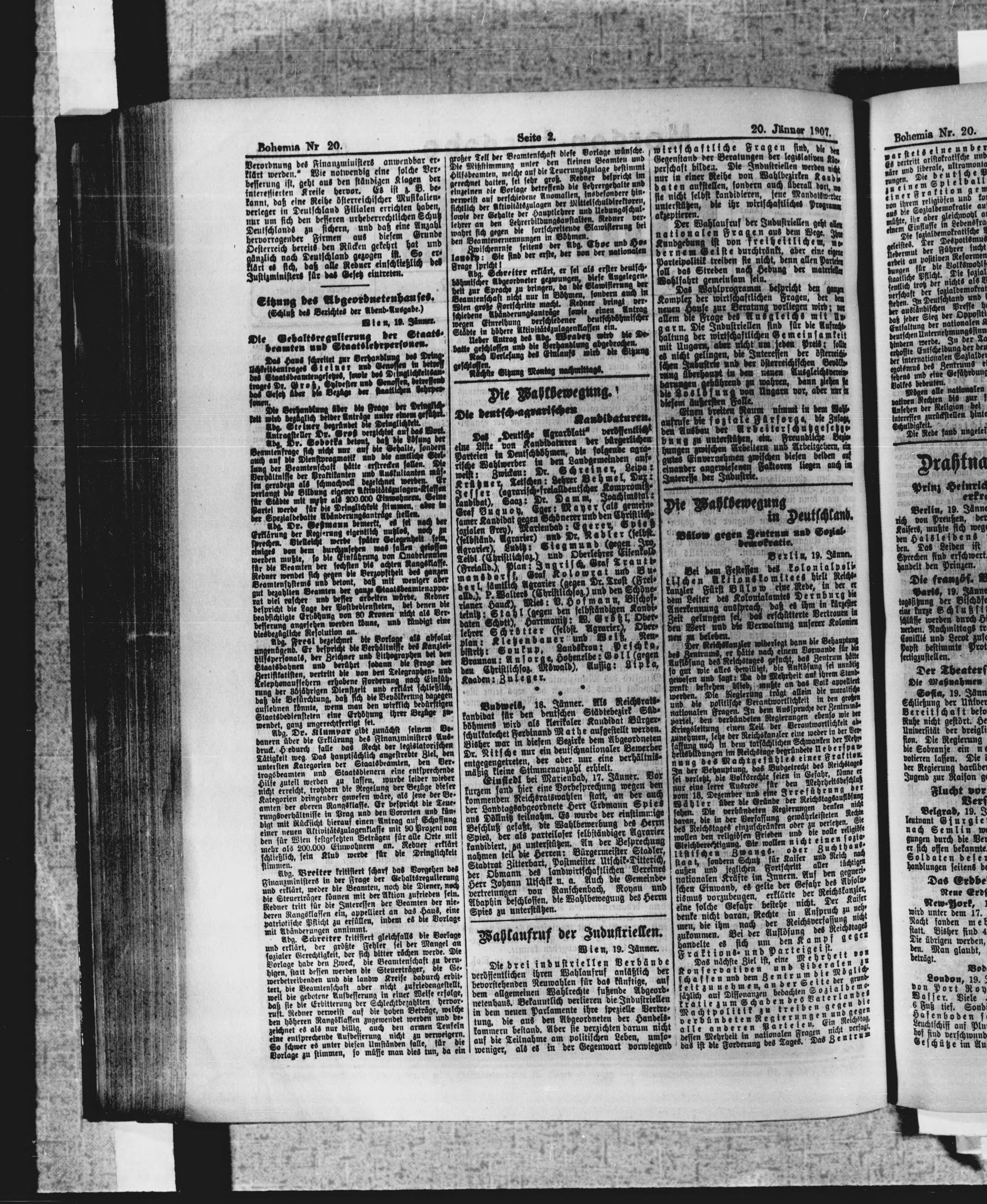 * Datum vydání výtisku: 20.1.1907 Číslo výtisku: 20 Poznámky k výtisku: ranní vydání