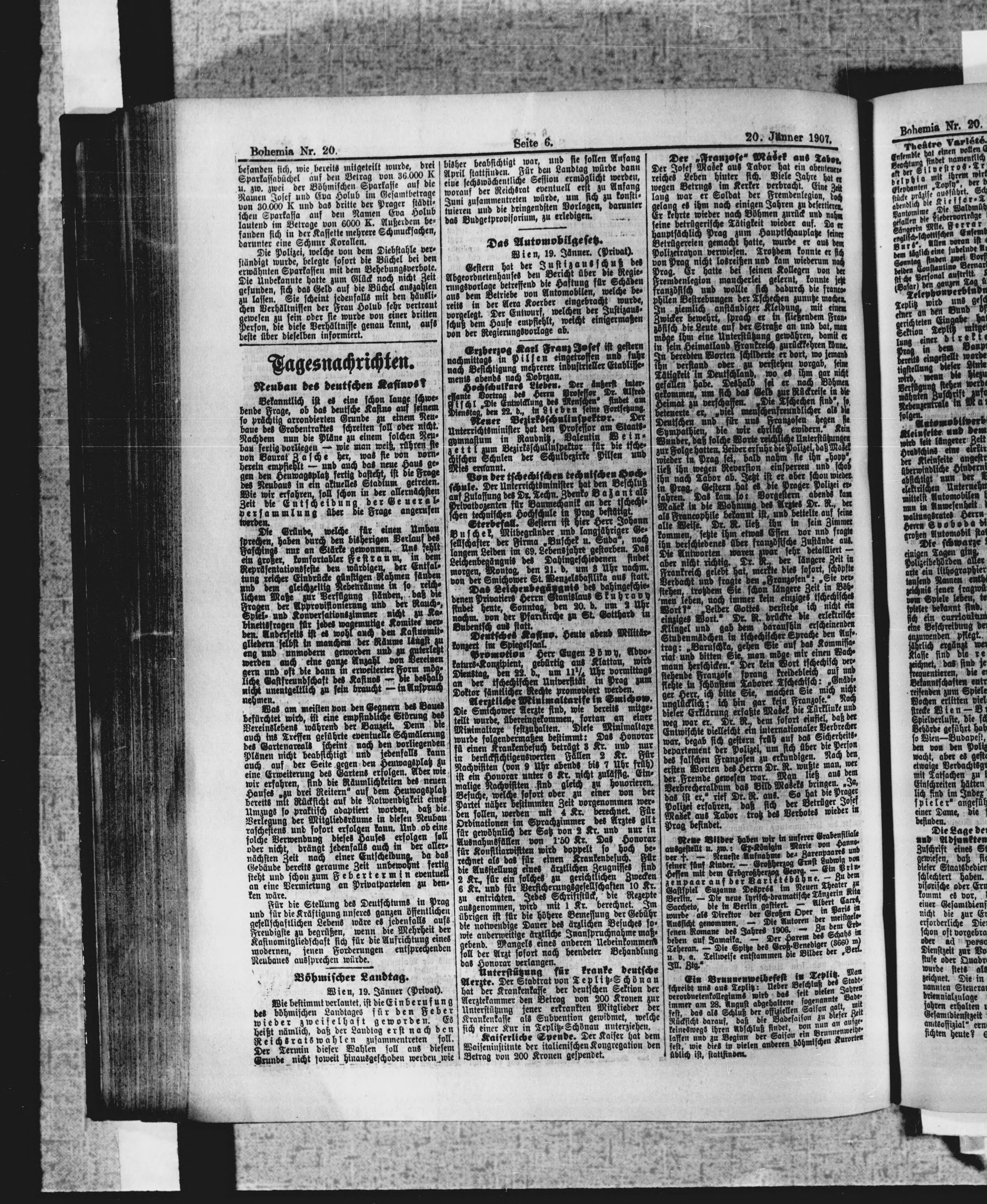* Datum vydání výtisku: 20.1.1907 Číslo výtisku: 20 Poznámky k výtisku: ranní vydání