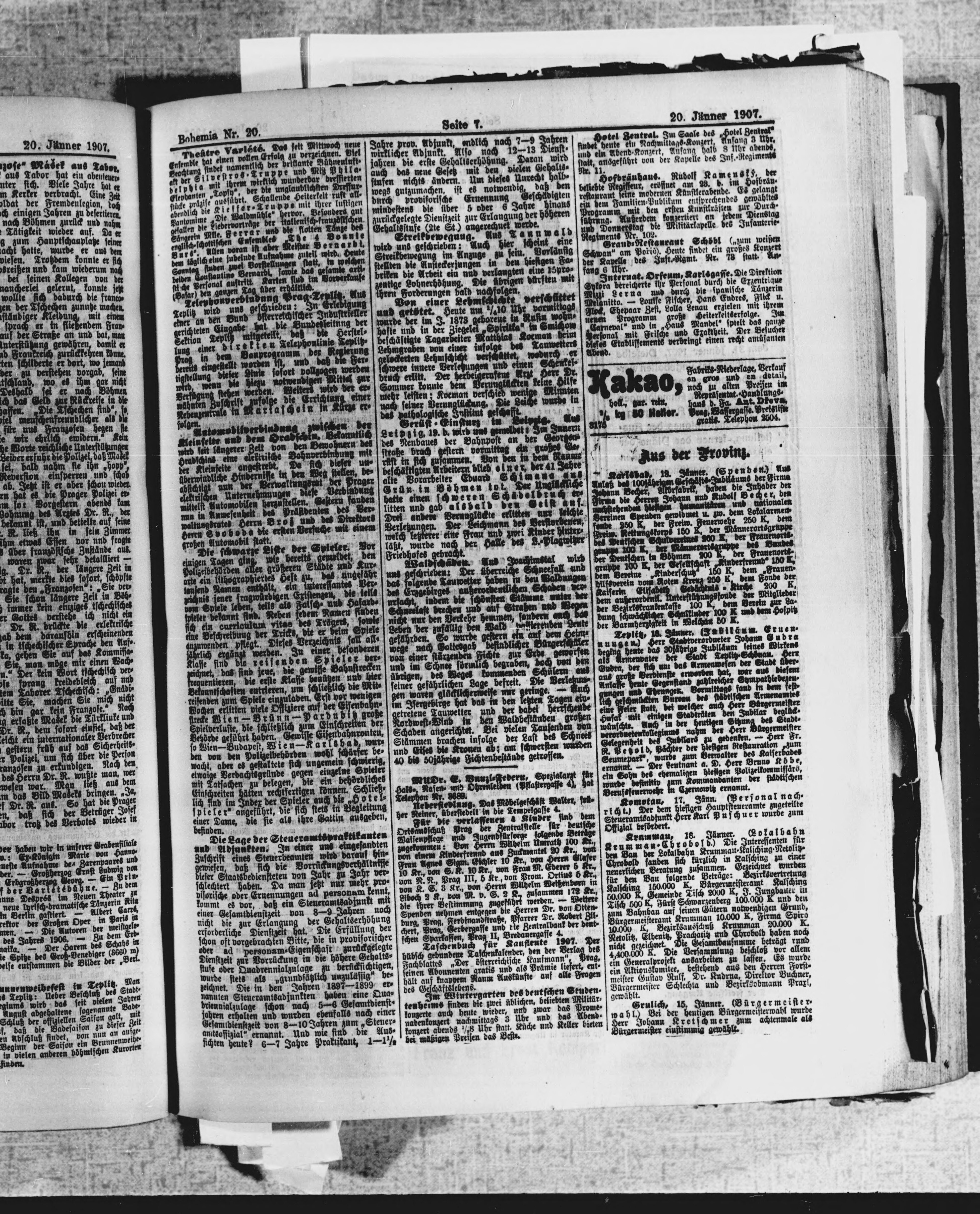 * Datum vydání výtisku: 20.1.1907 Číslo výtisku: 20 Poznámky k výtisku: ranní vydání