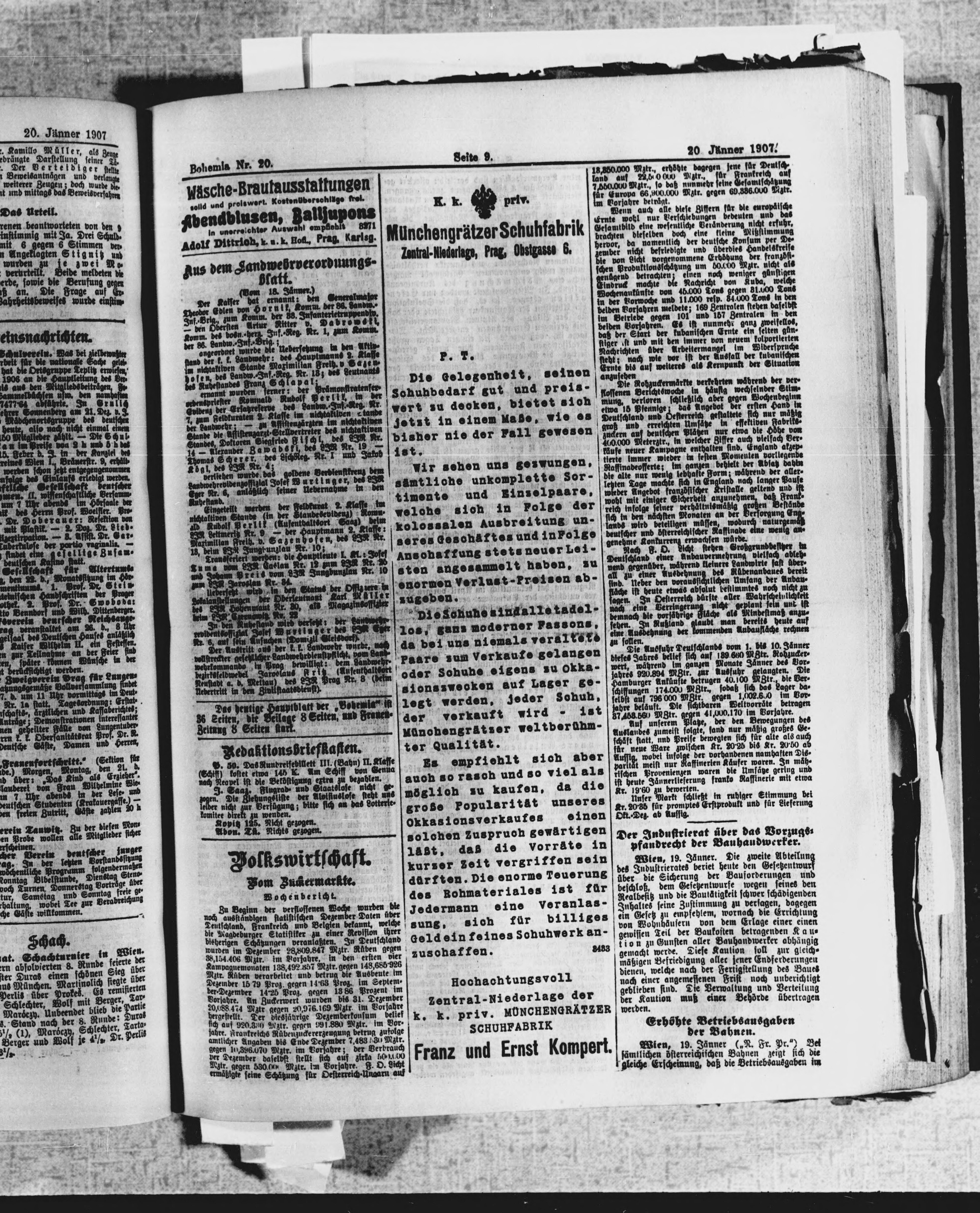 * Datum vydání výtisku: 20.1.1907 Číslo výtisku: 20 Poznámky k výtisku: ranní vydání