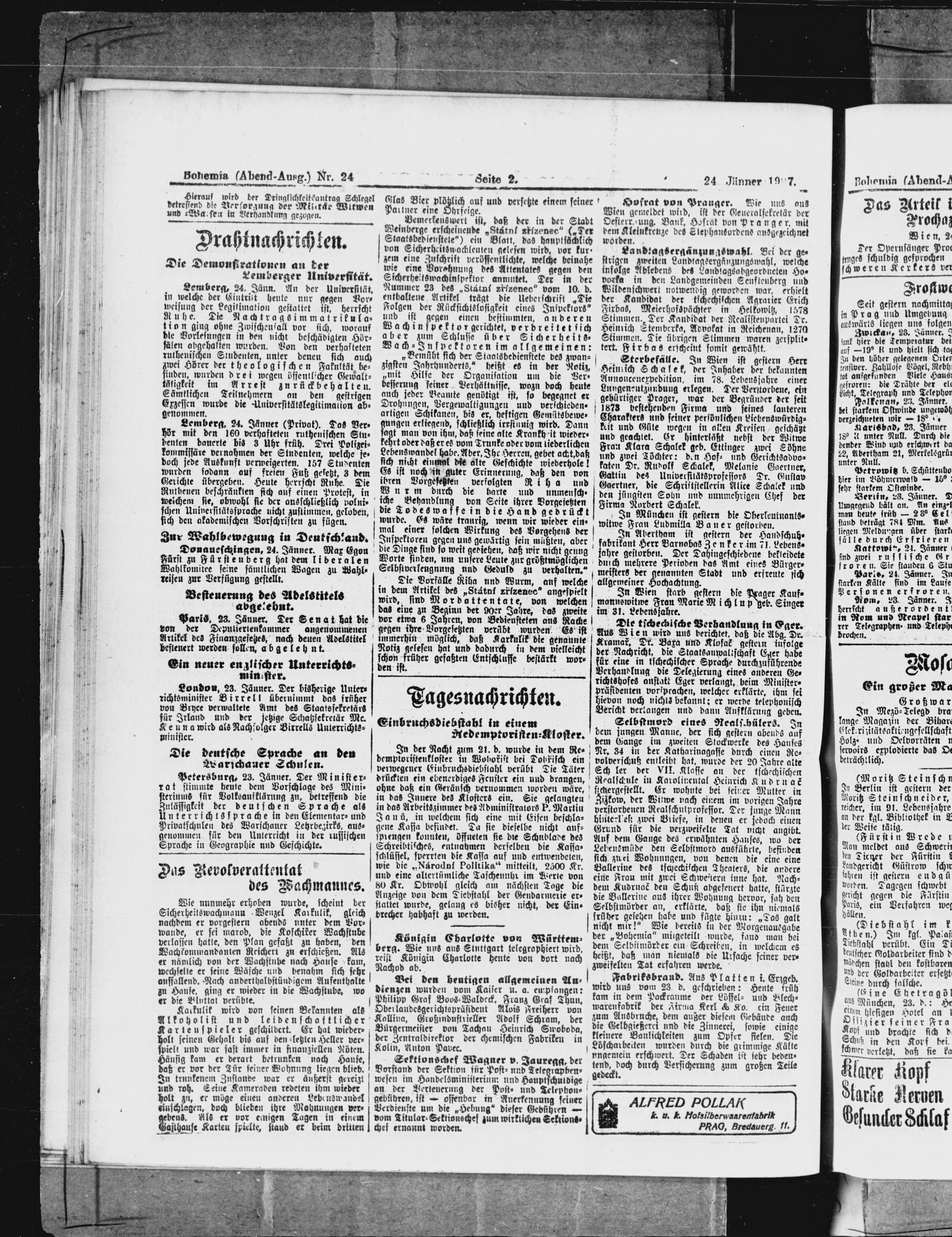 * Datum vydání výtisku: 24.1.1907 Číslo výtisku: 24 Poznámky k výtisku: večerní vydání