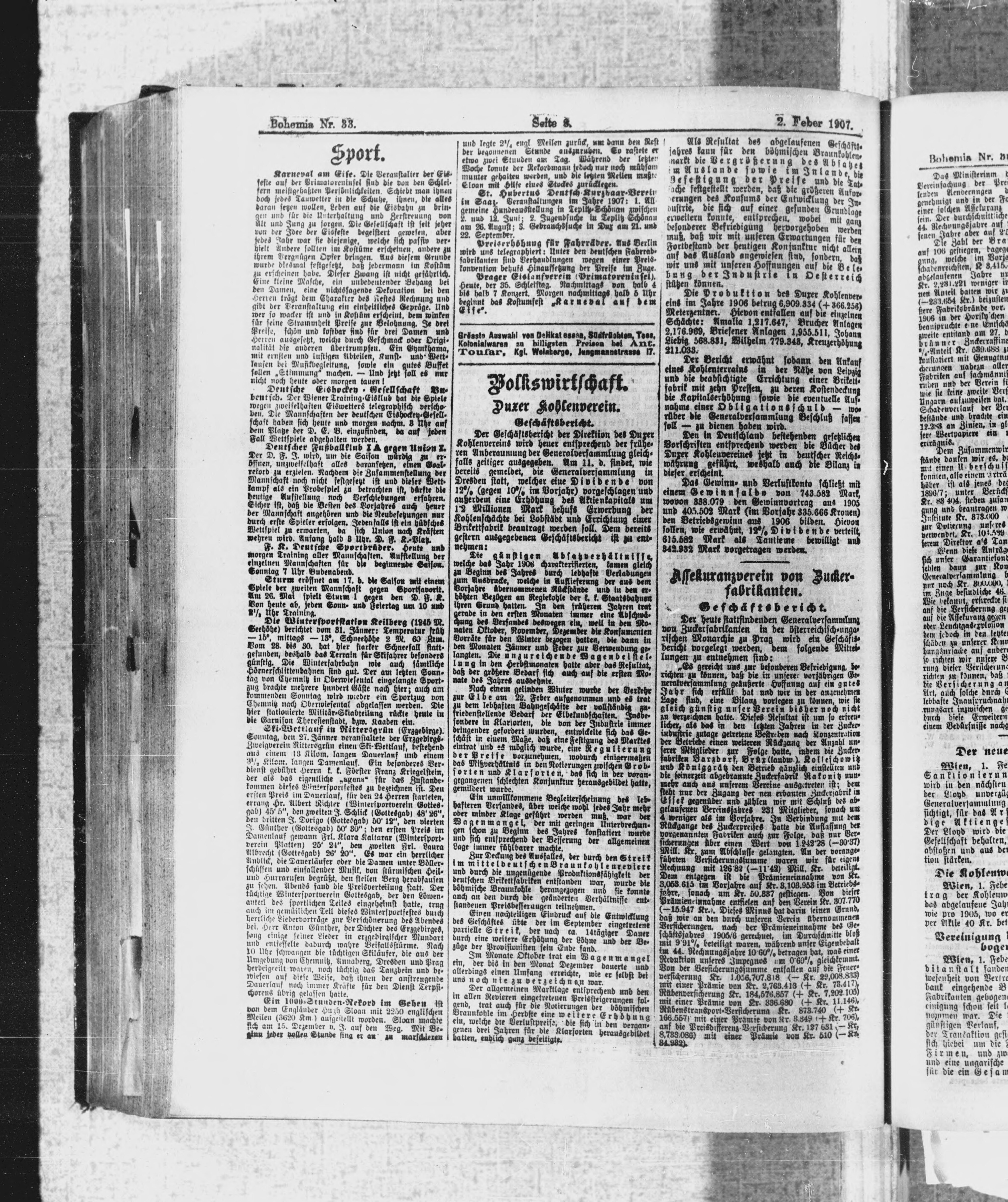 * Datum vydání výtisku: 2.2.1907 Číslo výtisku: 33 Poznámky k výtisku: ranní vydání