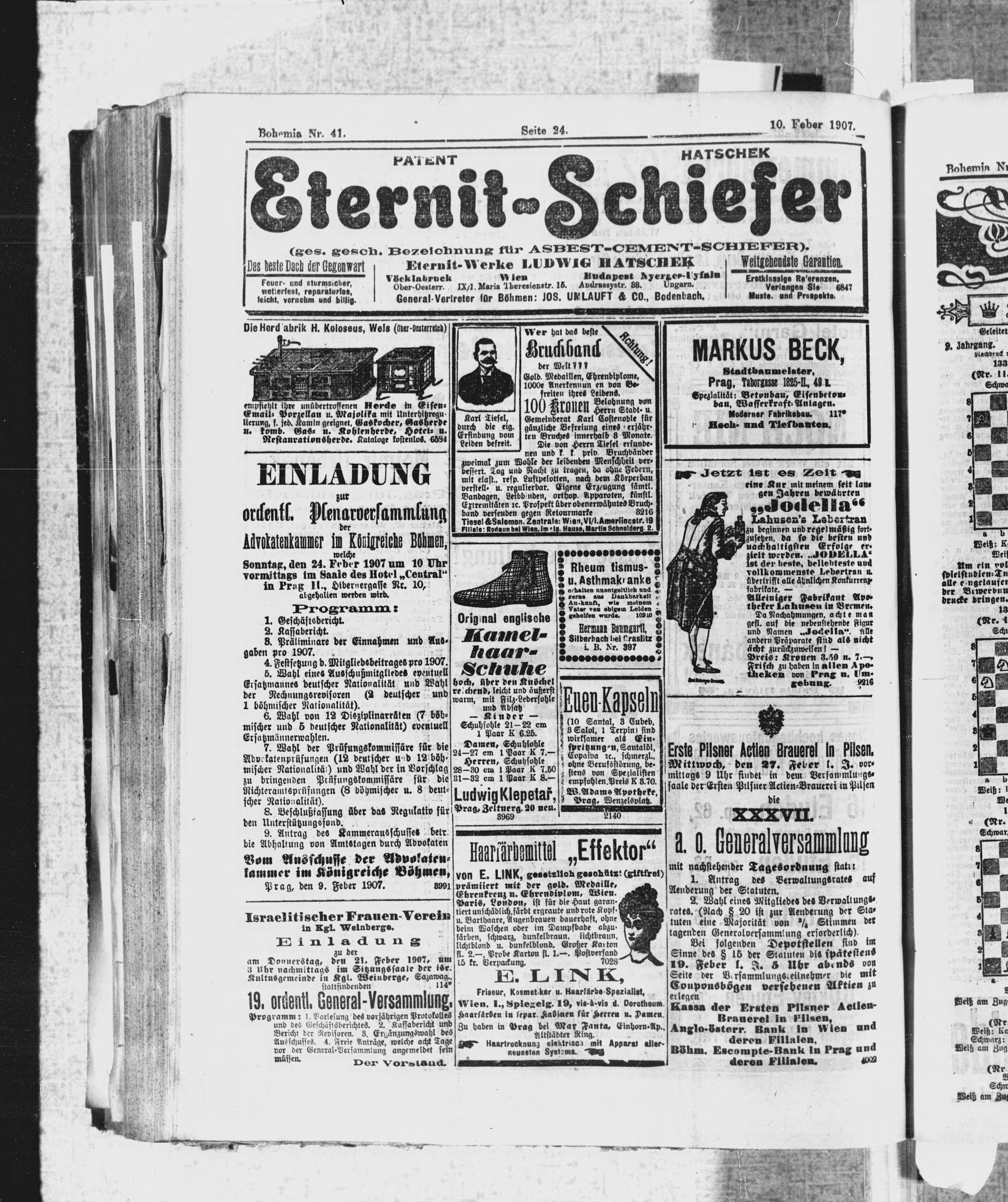 * Datum vydání výtisku: 10.2.1907 Číslo výtisku: 41 Poznámky k výtisku: ranní vydání