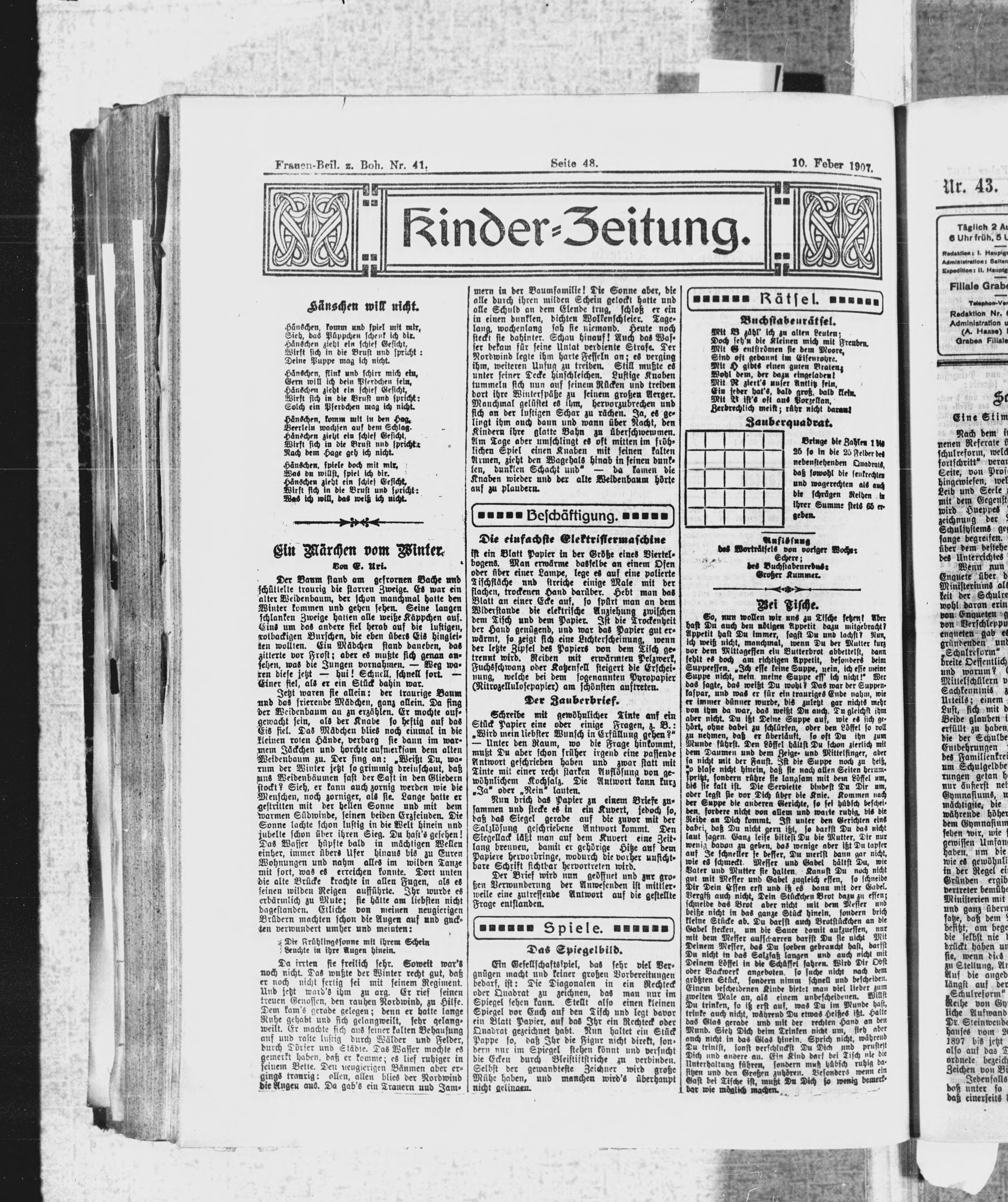 * Datum vydání výtisku: 10.2.1907 Číslo výtisku: 41 Typ výtisku: příloha