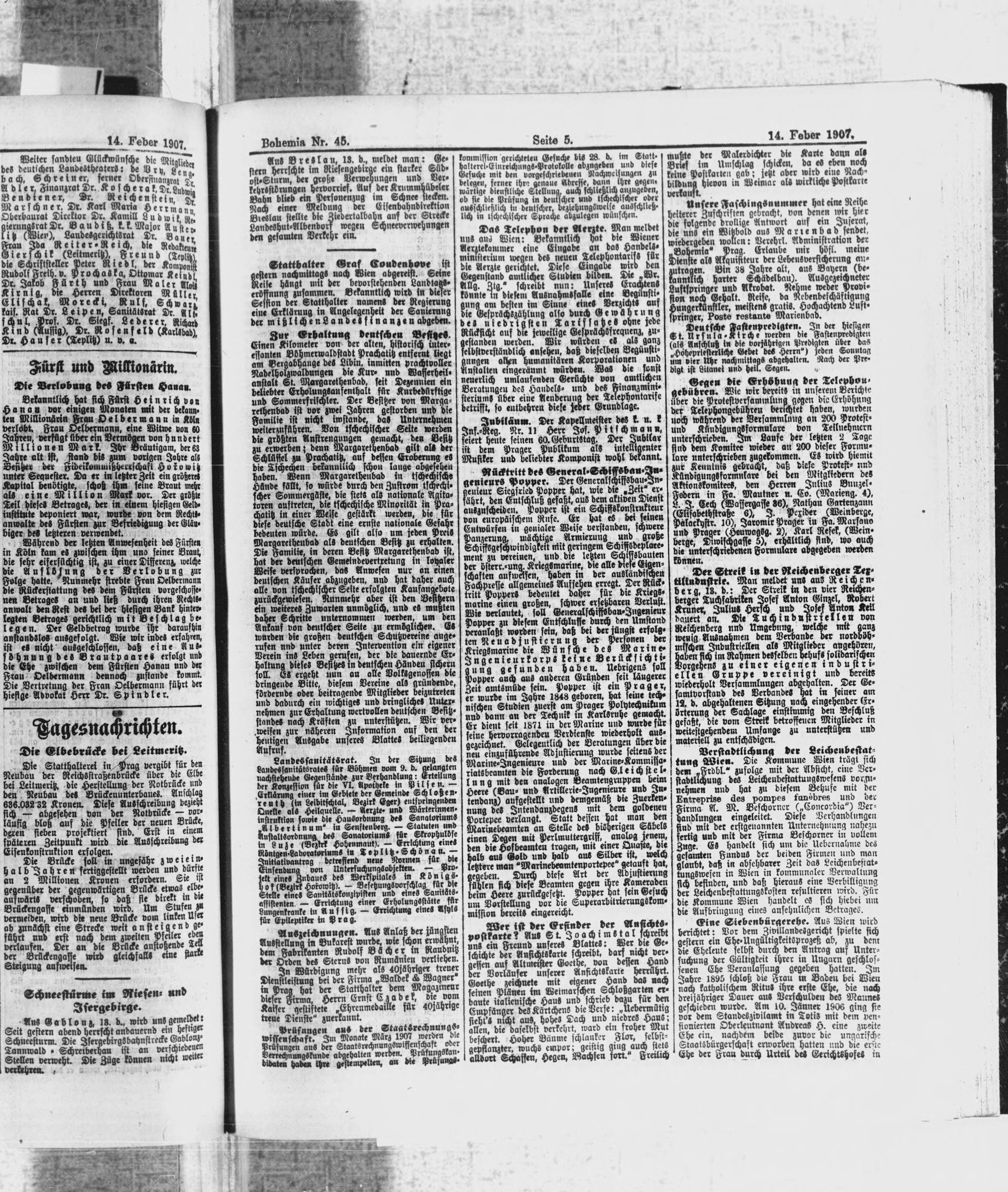 * Datum vydání výtisku: 14.2.1907 Číslo výtisku: 45 Poznámky k výtisku: ranní vydání