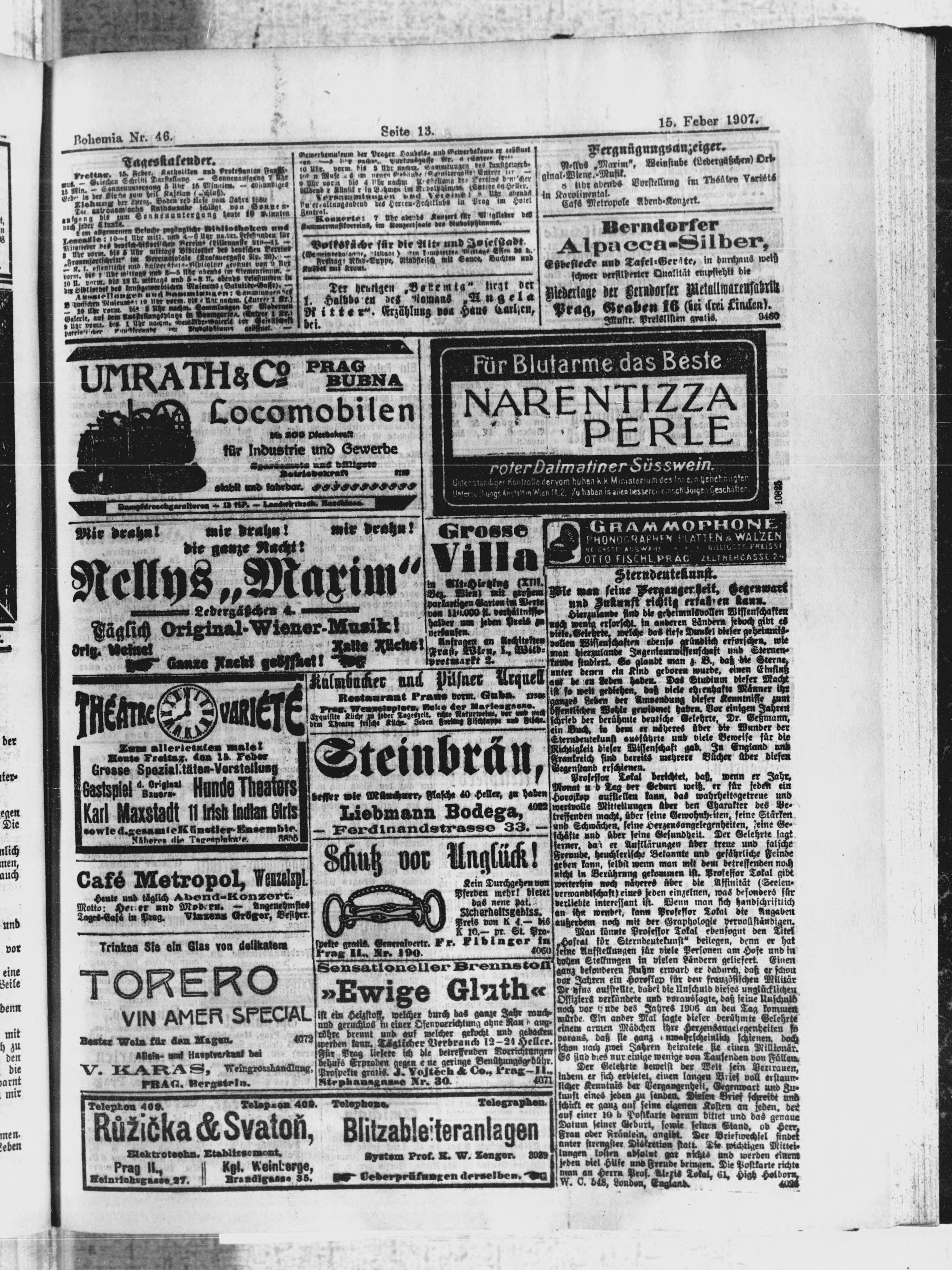 * Datum vydání výtisku: 15.2.1907 Číslo výtisku: 46 Poznámky k výtisku: ranní vydání