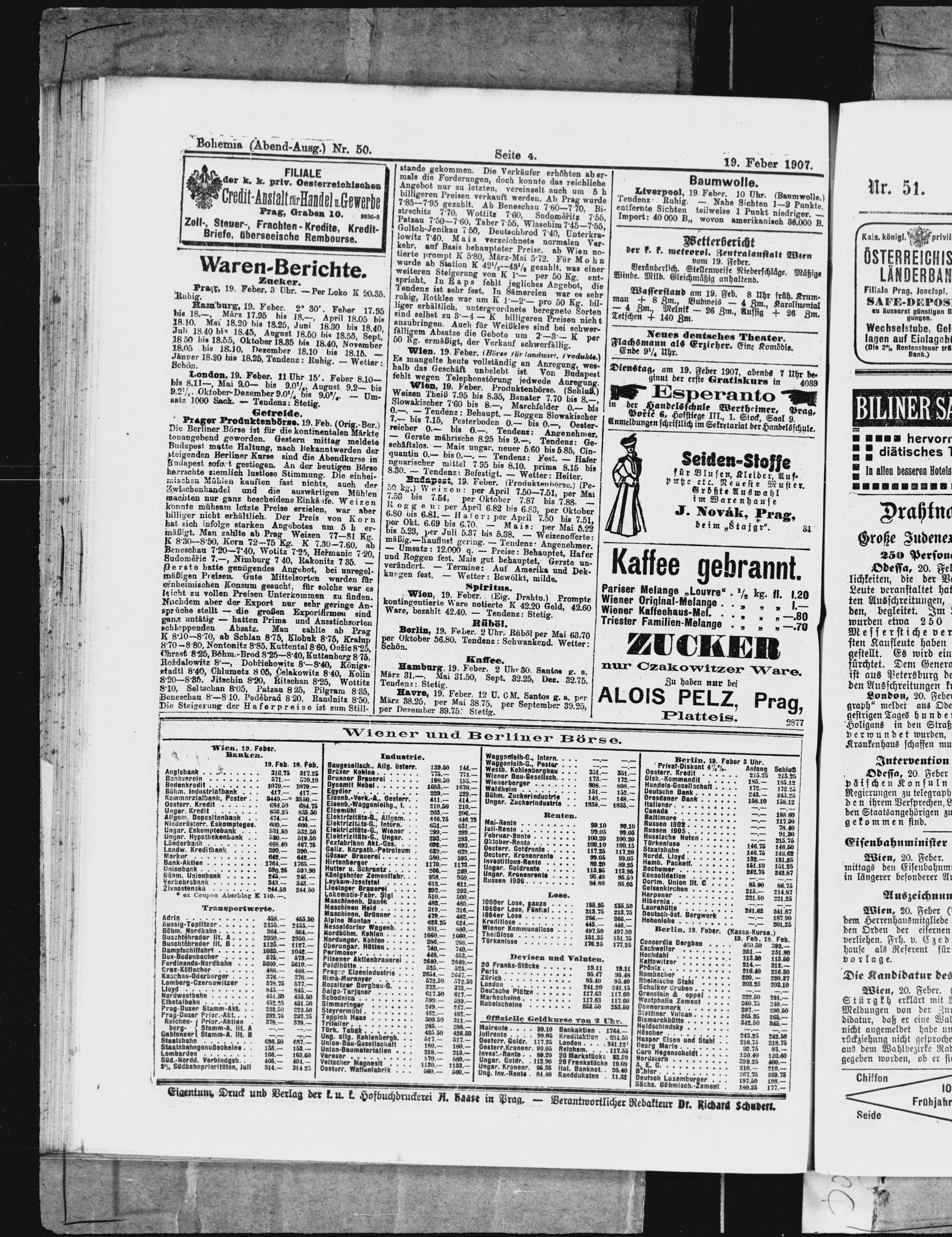 * Datum vydání výtisku: 19.2.1907 Číslo výtisku: 50 Poznámky k výtisku: večerní vydání