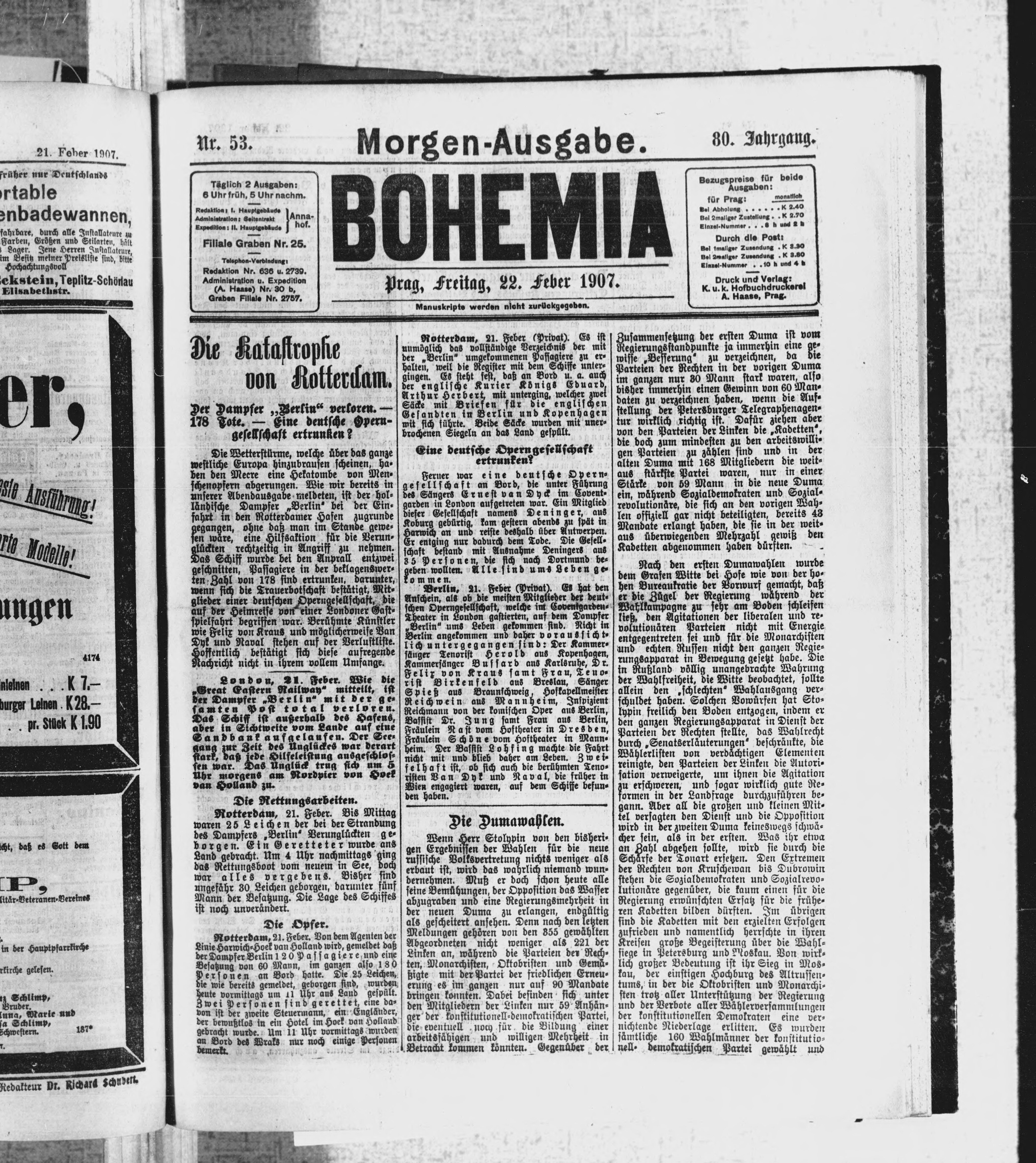 * Datum vydání výtisku: 22.2.1907 Číslo výtisku: 53 Poznámky k výtisku: ranní vydání
