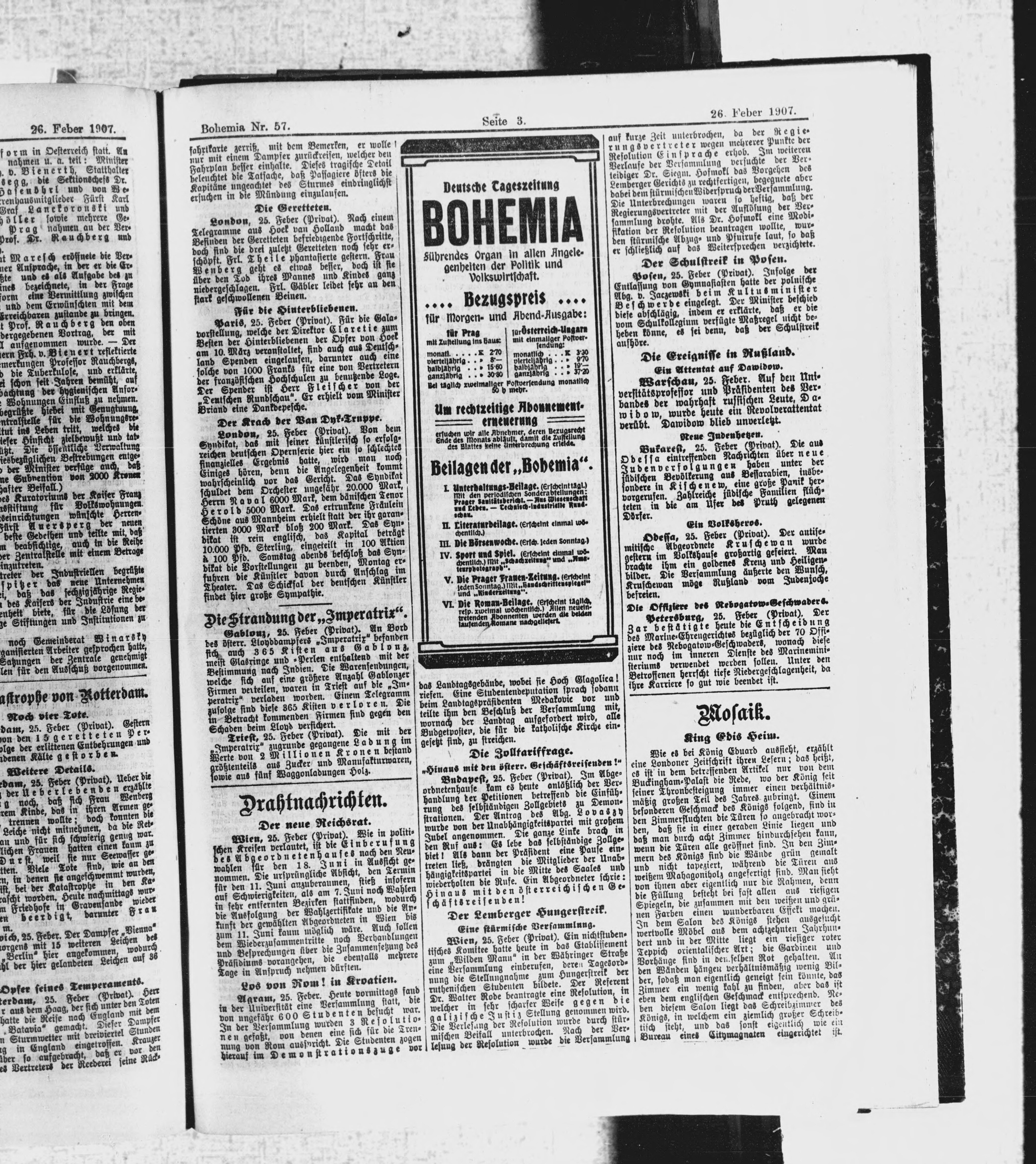 * Datum vydání výtisku: 26.2.1907 Číslo výtisku: 57 Poznámky k výtisku: ranní vydání
