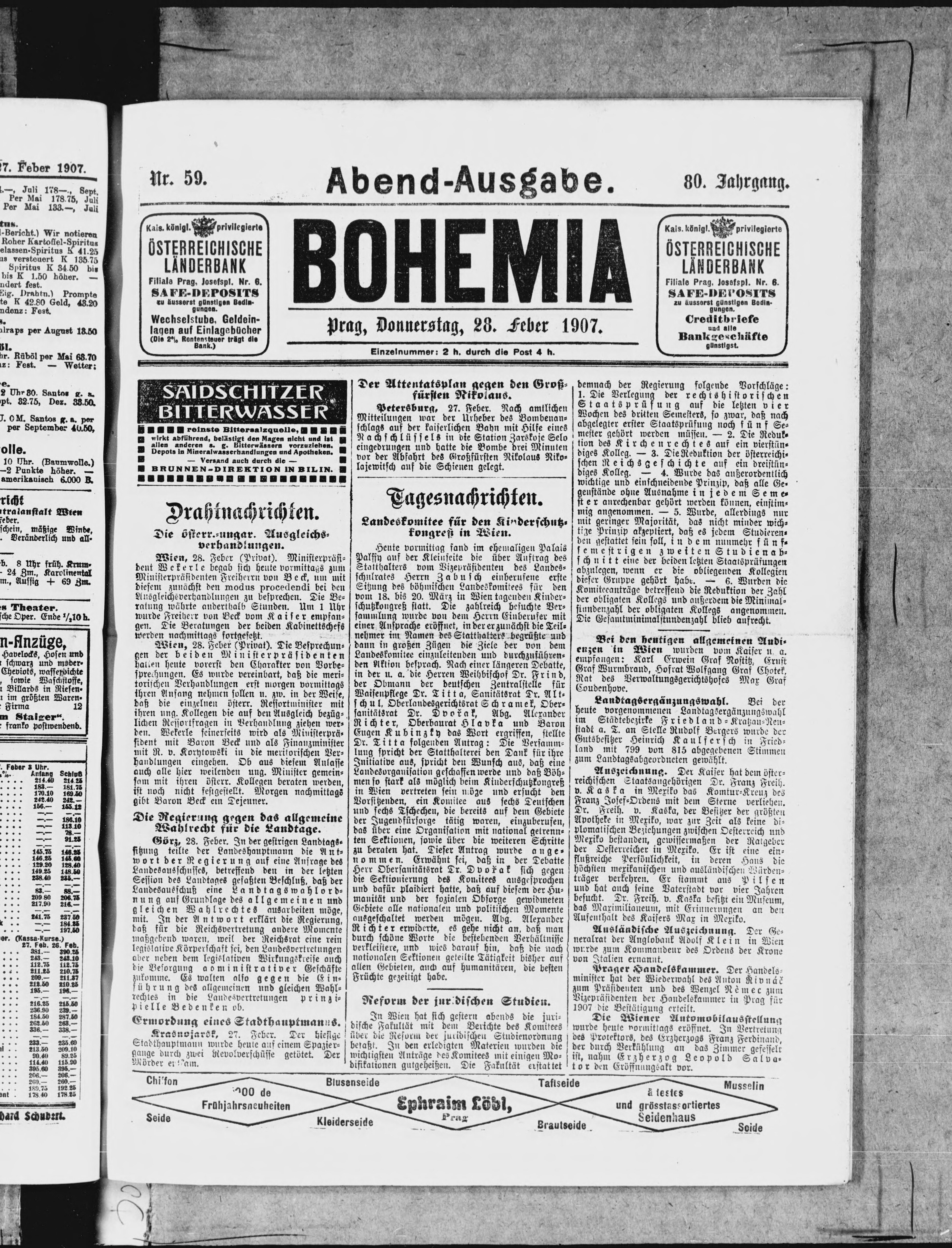 * Datum vydání výtisku: 28.2.1907 Číslo výtisku: 59 Poznámky k výtisku: večerní vydání