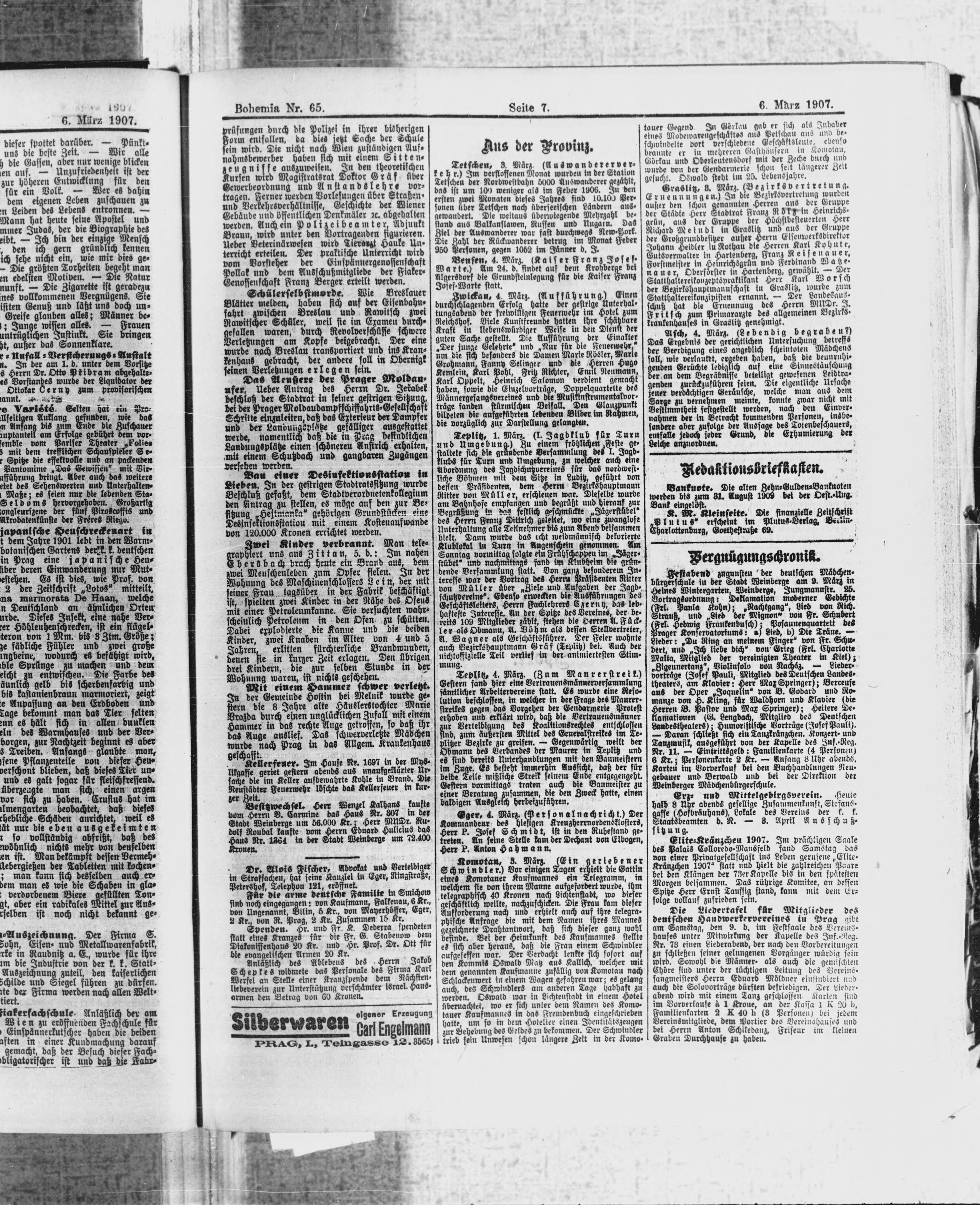 * Datum vydání výtisku: 6.3.1907 Číslo výtisku: 65 Poznámky k výtisku: ranní vydání