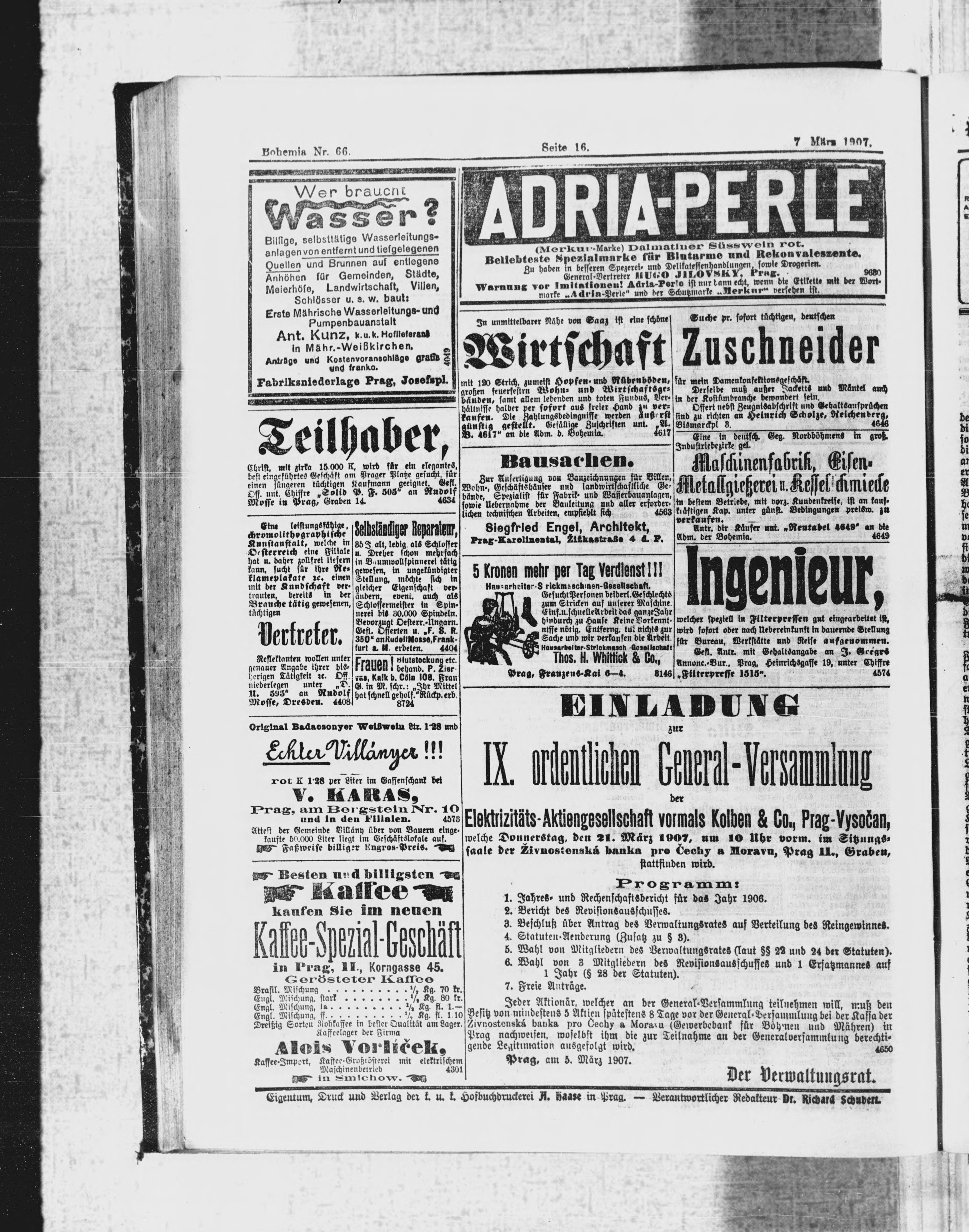* Datum vydání výtisku: 7.3.1907 Číslo výtisku: 66 Poznámky k výtisku: ranní vydání