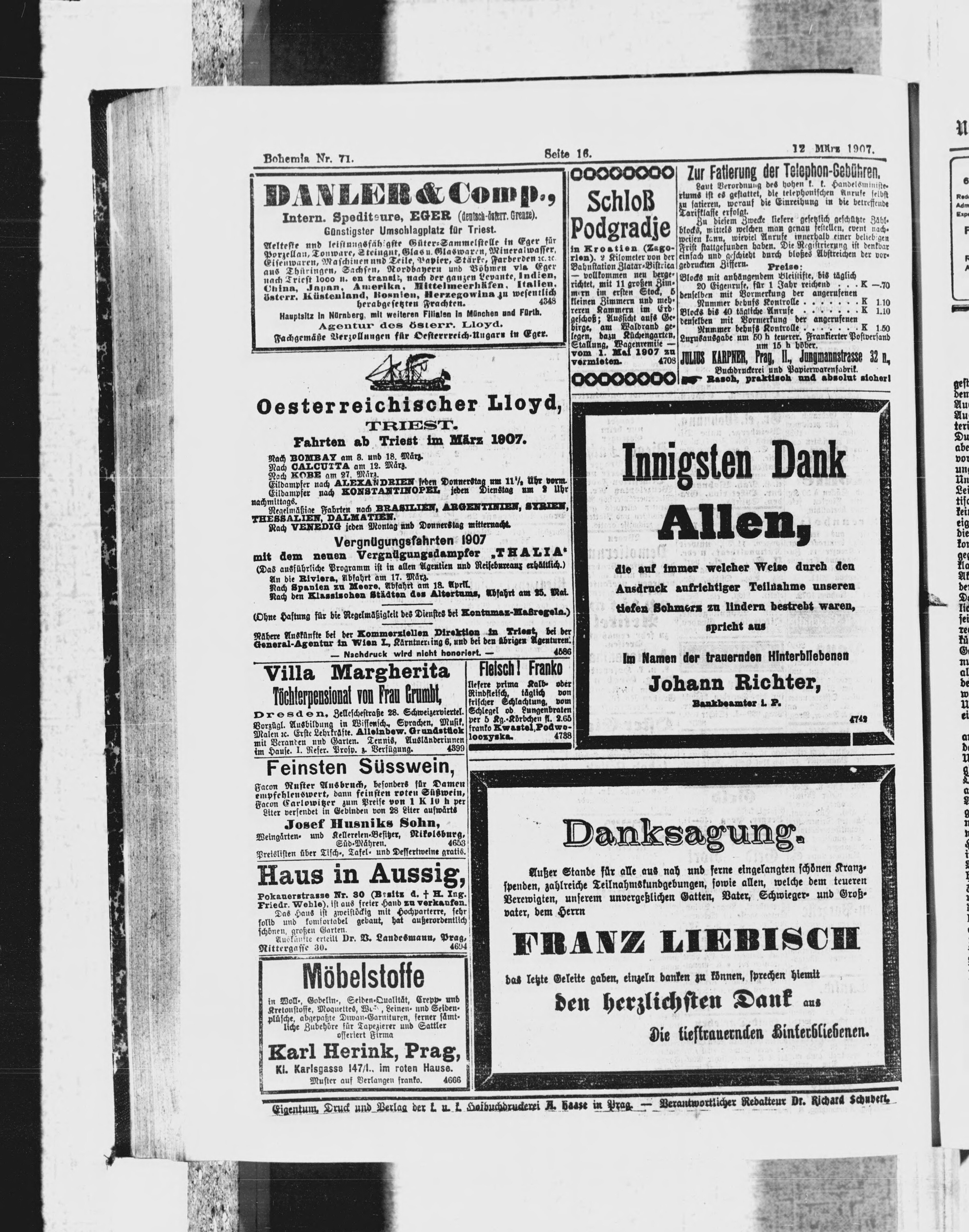 * Datum vydání výtisku: 12.3.1907 Číslo výtisku: 71 Poznámky k výtisku: ranní vydání