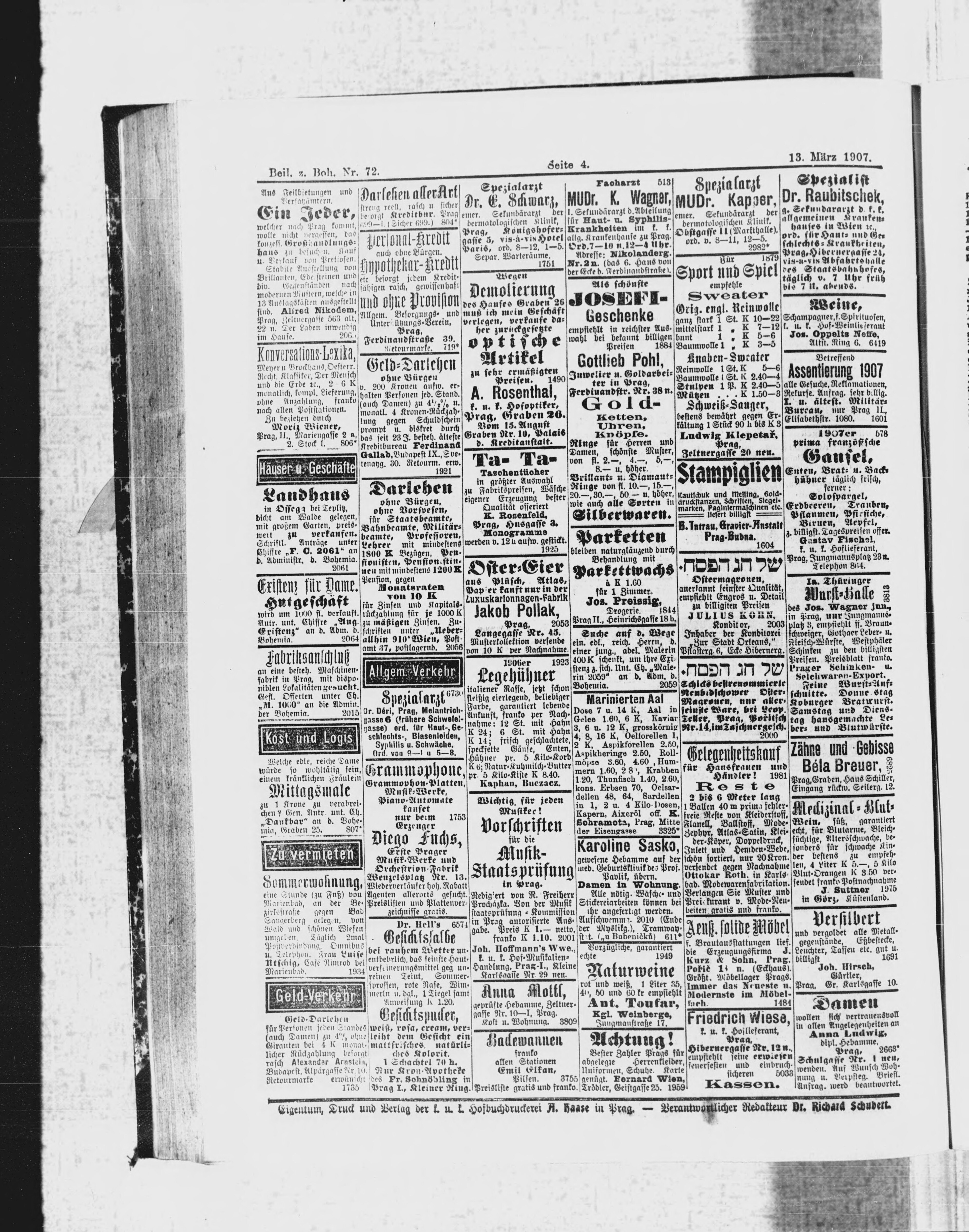 * Datum vydání výtisku: 13.3.1907 Číslo výtisku: 72 Typ výtisku: příloha