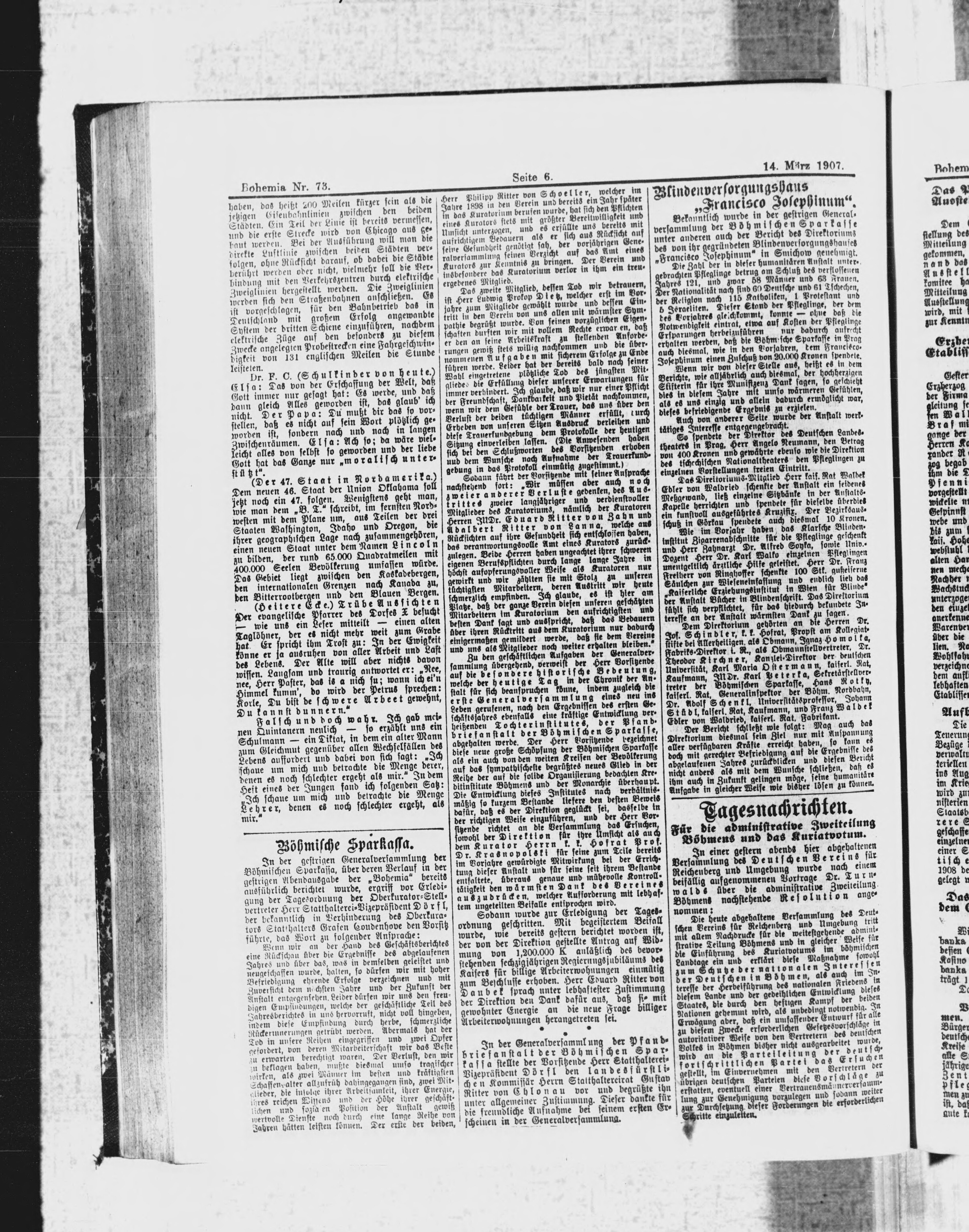 * Datum vydání výtisku: 14.3.1907 Číslo výtisku: 73 Poznámky k výtisku: ranní vydání