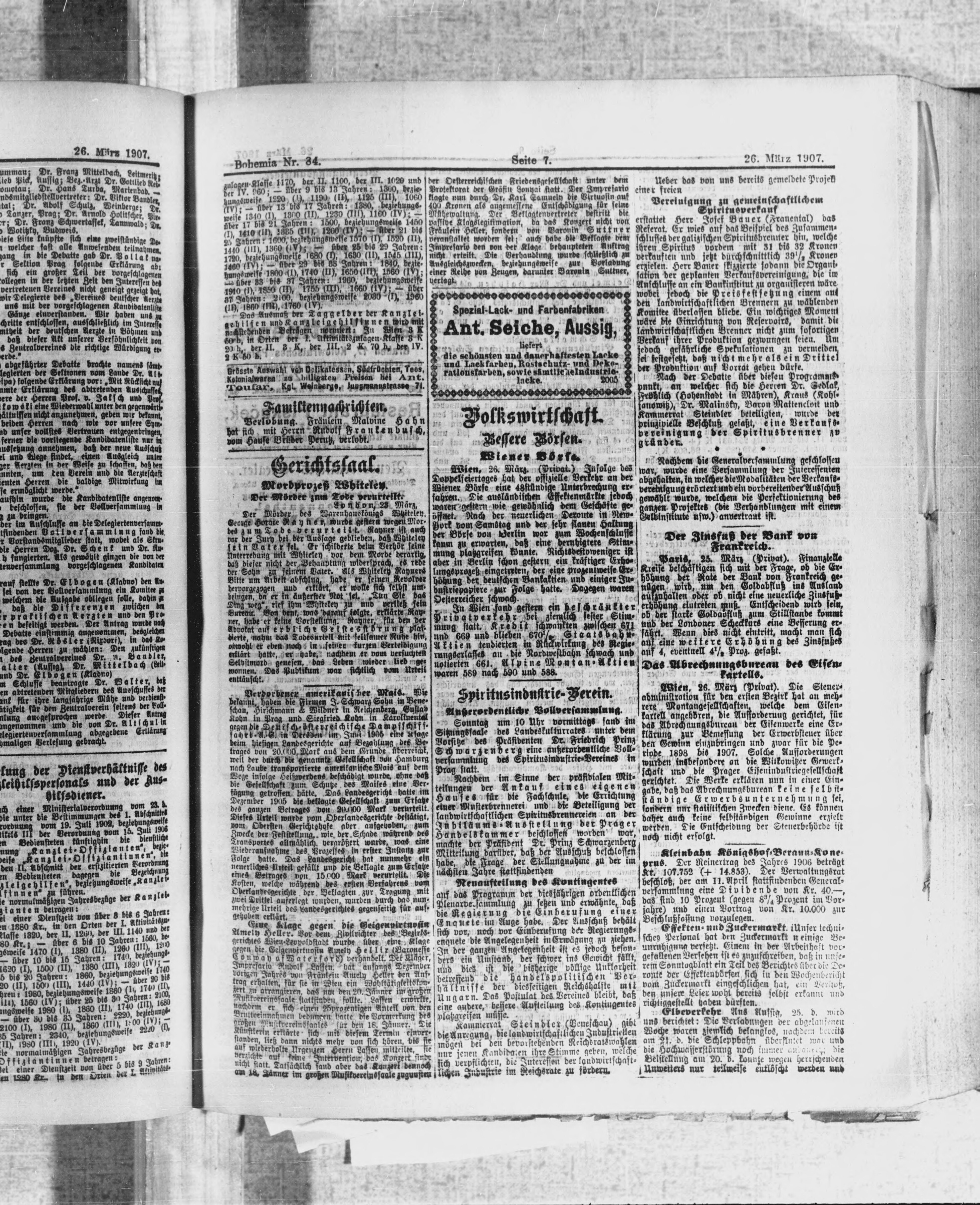 * Datum vydání výtisku: 26.3.1907 Číslo výtisku: 84 Poznámky k výtisku: polední vydání